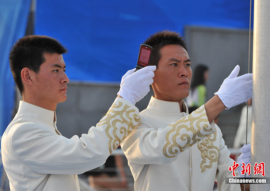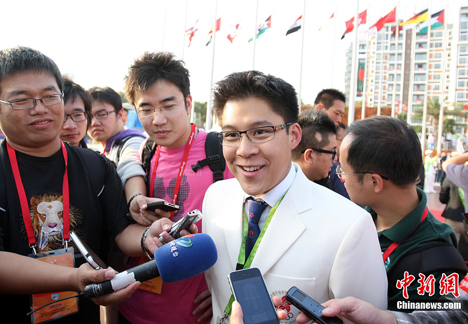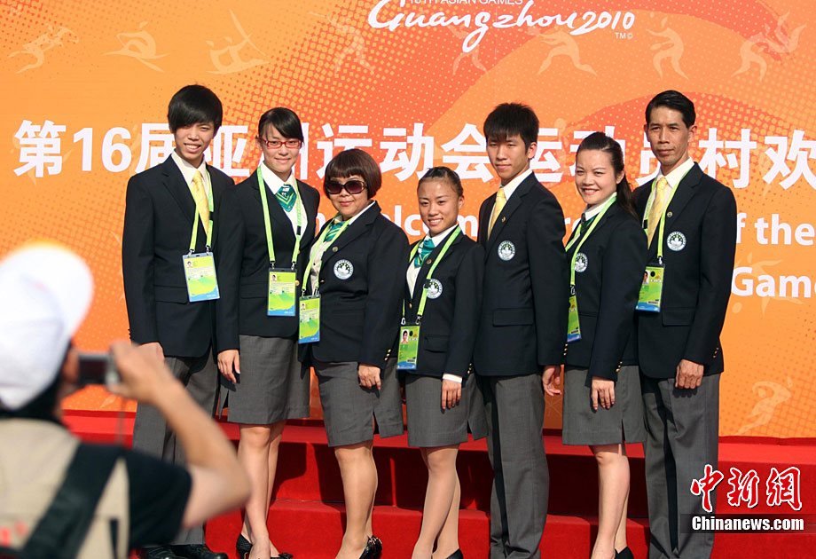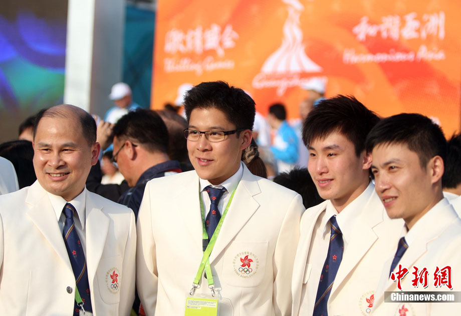11月11日,霍啟剛(左二)參加香港體育代表團(tuán)出席廣州亞運(yùn)村升旗儀式,并表示將親臨賽場(chǎng)為運(yùn)動(dòng)員助威。此次,霍啟剛被廣州亞組委委任為廣州亞運(yùn)會(huì)香港賽會(huì)志愿者隊(duì)伍團(tuán)長(zhǎng)。中新社記者 湯彥俊 攝