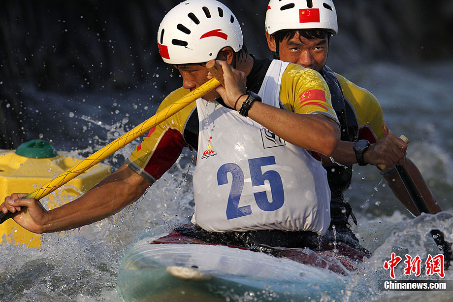 11月11日下午,中國隊(duì)女子單人選手在位于廣州市郊米崗的廣東國際劃船中心激流回旋賽道訓(xùn)練,力爭金牌。中新社記者 任晨鳴 攝