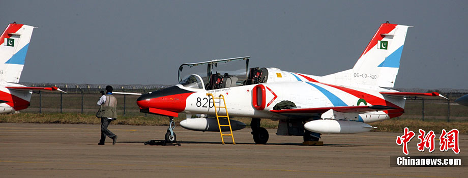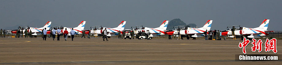 11月12日,參加第8屆中國國際航空航天博覽會的中外飛機(jī)陸續(xù)抵達(dá)珠海。圖為警200停在展場。圖片來源:CNSPHOTO 喬天富 攝