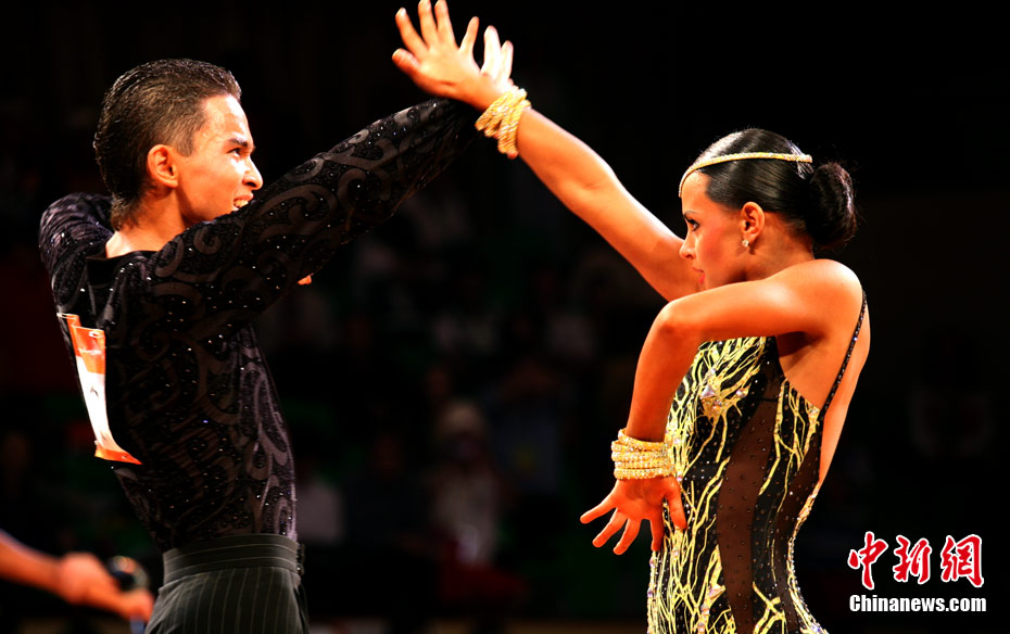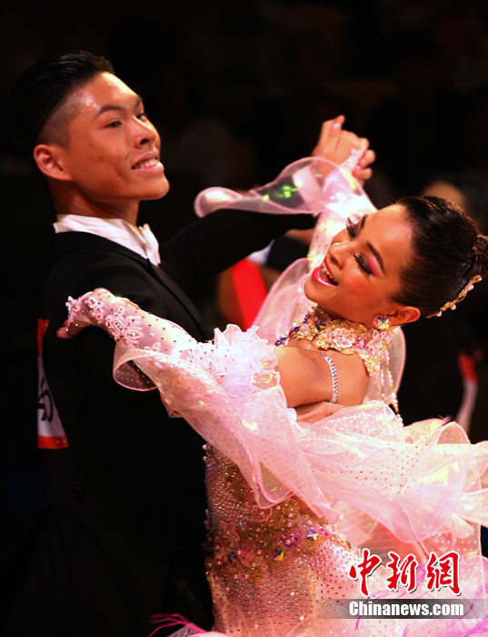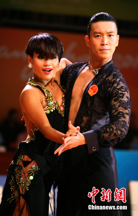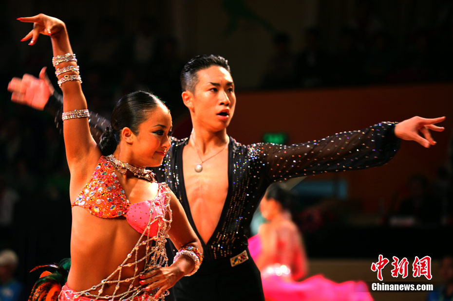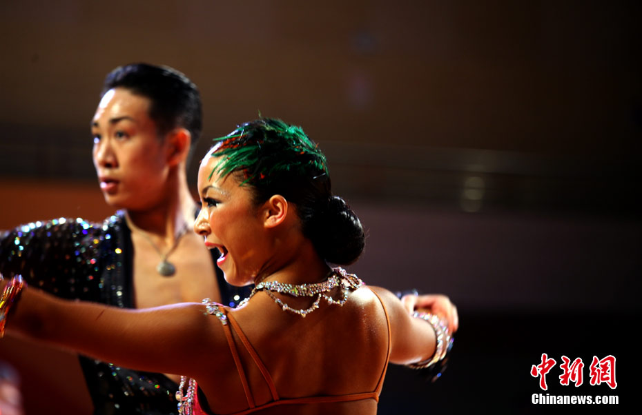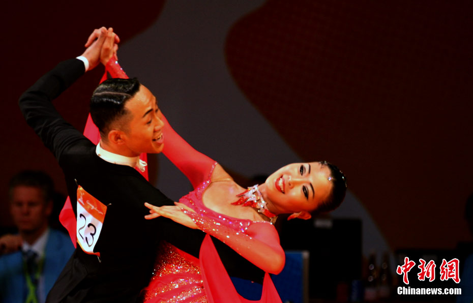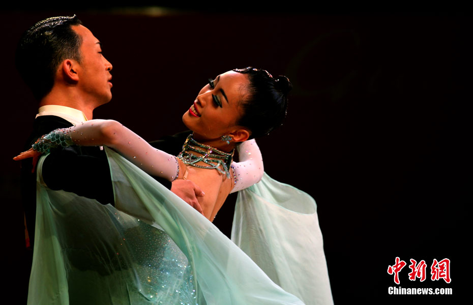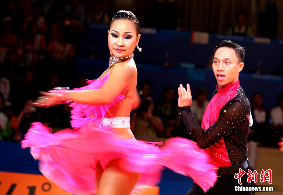 11月13日,首次成為亞運(yùn)會(huì)正式比賽項(xiàng)目的體育舞蹈比賽在廣州增城體育館拉開帷幕。來著亞洲的頂尖舞者將在兩天的時(shí)間里角逐十個(gè)項(xiàng)目的金牌。選手們首先在標(biāo)準(zhǔn)舞華爾茲、探戈、狐步、快步和拉丁5項(xiàng)舞五個(gè)項(xiàng)目中給觀眾帶來美輪美奐的享受。中新社記者 張茵 攝
