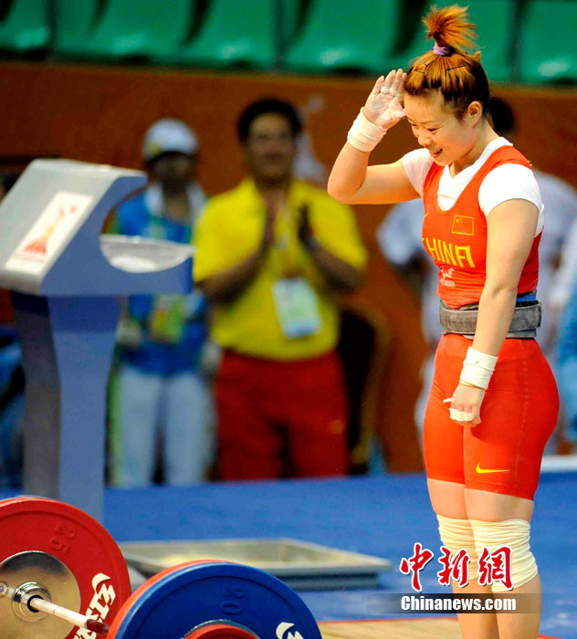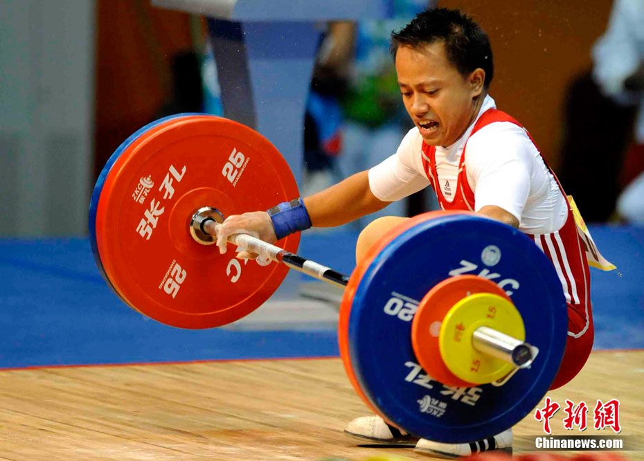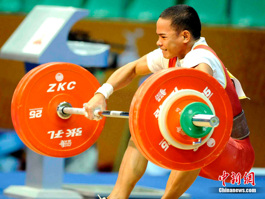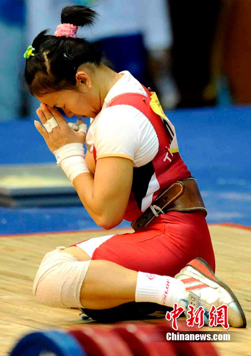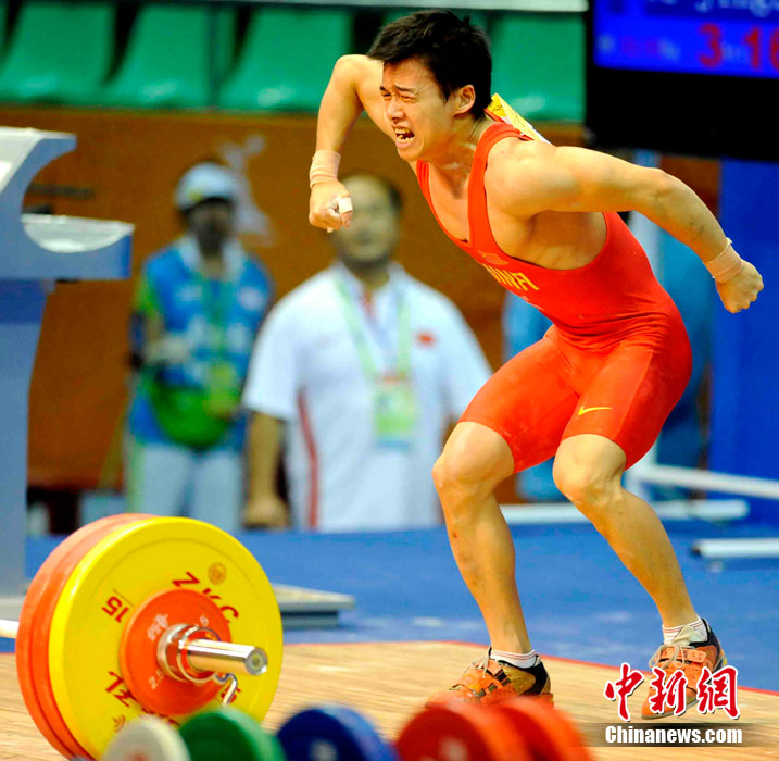 11月13日,廣州亞運(yùn)會(huì)舉重比賽全面開(kāi)戰(zhàn),賽場(chǎng)上選手們失利的瞬間讓人揪心不已。 中新社記者 王東明 攝