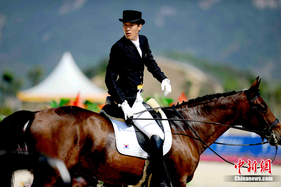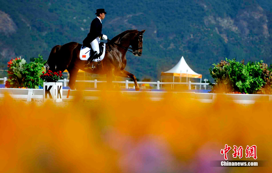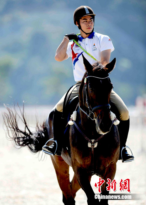 11月14日,廣州亞運(yùn)馬術(shù)比賽在廣州馬術(shù)場(chǎng)舉行,這個(gè)號(hào)稱亞運(yùn)最昂貴的比賽項(xiàng)目上駿馬、美女、帥哥齊全,據(jù)悉,比賽中的馬匹最少都要幾百萬(wàn)人民幣,有的更高達(dá)幾千萬(wàn),參賽選手也云集了阿拉伯國(guó)家的皇室貴族和富豪。中新社記者 王東明 攝