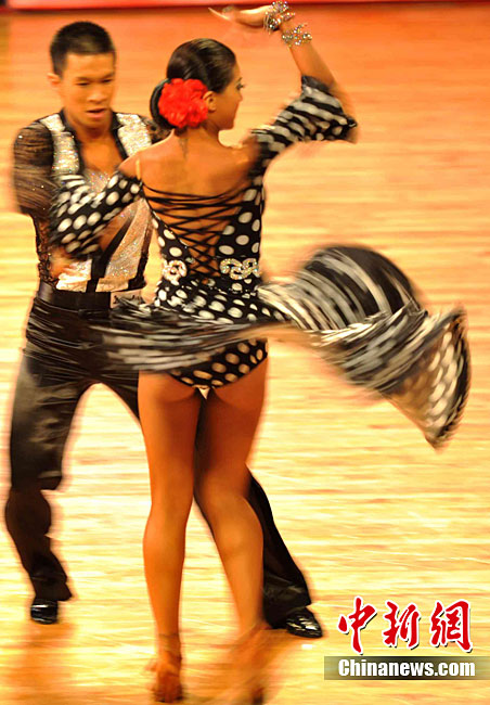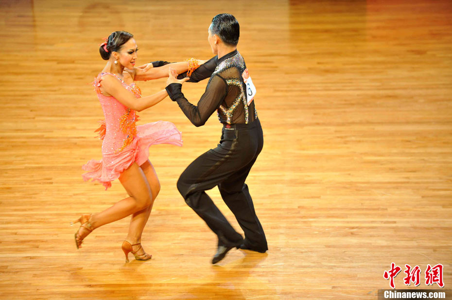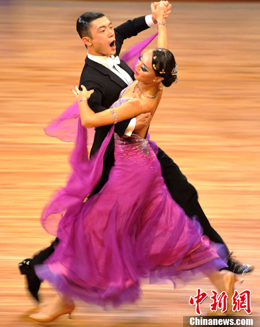 14日晚,中國選手楊超/譚軼凌奪得標(biāo)準(zhǔn)5項舞金牌,至此中國選手囊括了體育舞蹈全部十面金牌。中新社記者 柯小軍 攝
