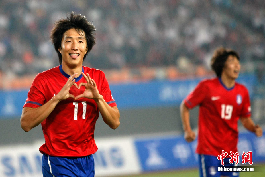11月15日晚,2010廣州亞運會男子足球1/8決賽中國隊與韓國隊的比賽在廣州天河體育場進行,最終中國隊0:3不敵對手,止步16強。 中新社記者 盛佳鵬 攝