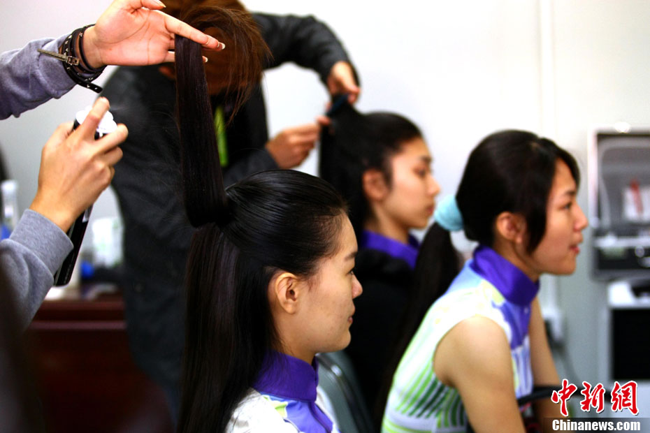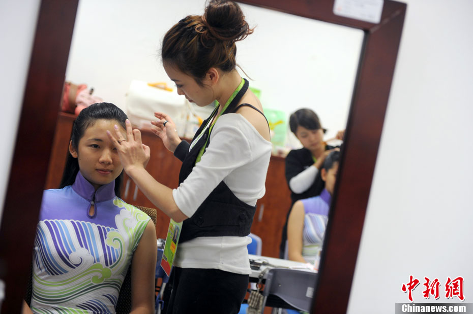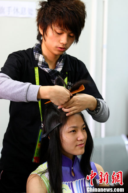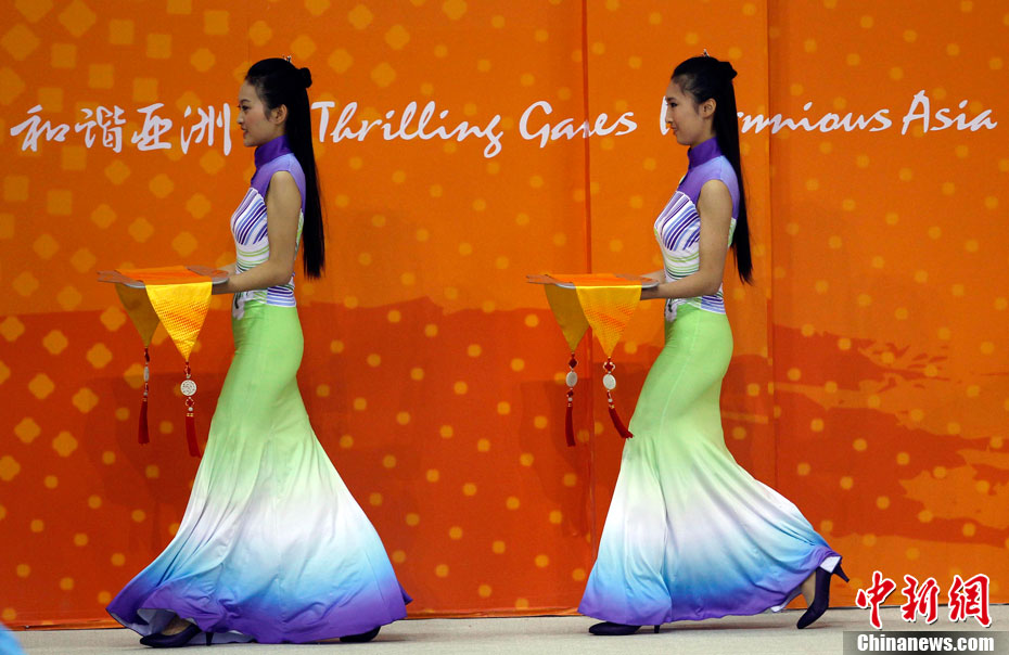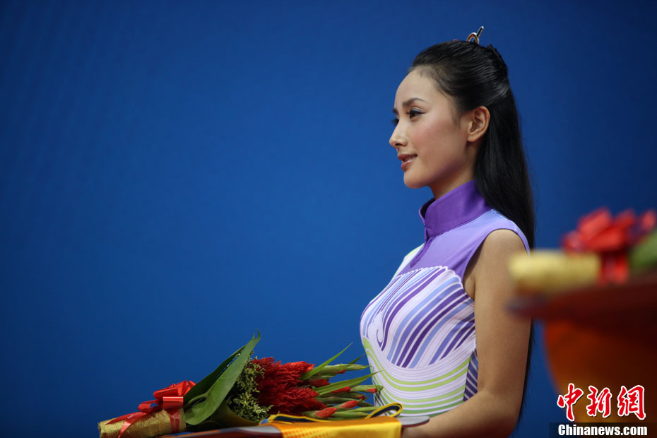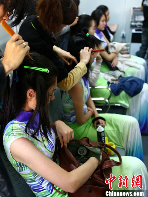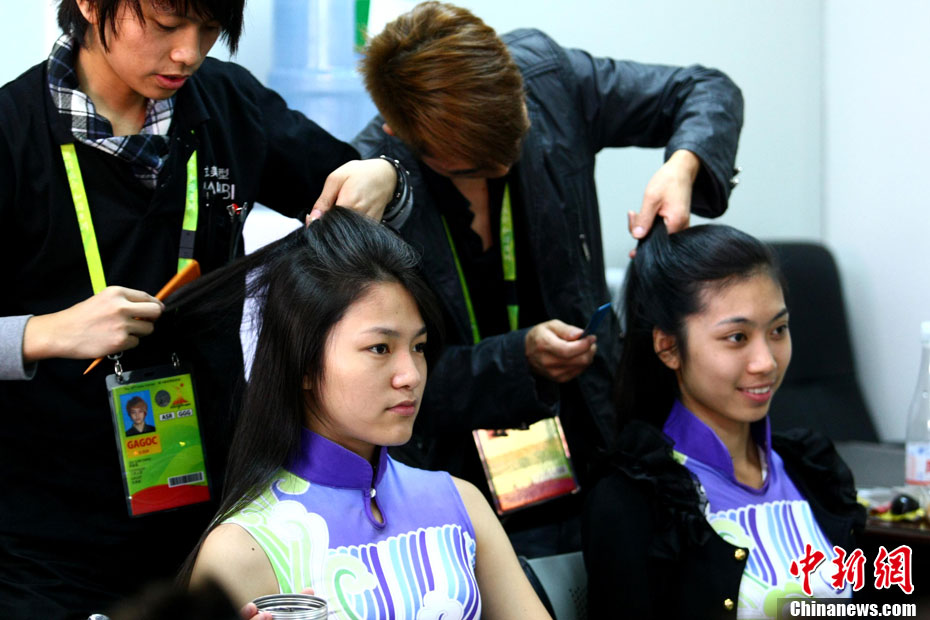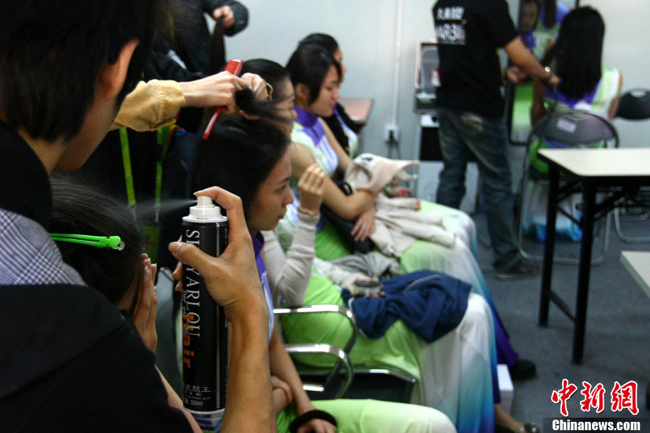 廣州亞運(yùn)會比賽開始后,對于這些美麗的姑娘們“戰(zhàn)斗”才剛剛打響,她們每天早上6點(diǎn)半就起床,趕到賽場,開始4個小時的準(zhǔn)備工作——化妝、做頭發(fā)、整體造型,這一切都為頒獎典禮的那短短一刻。