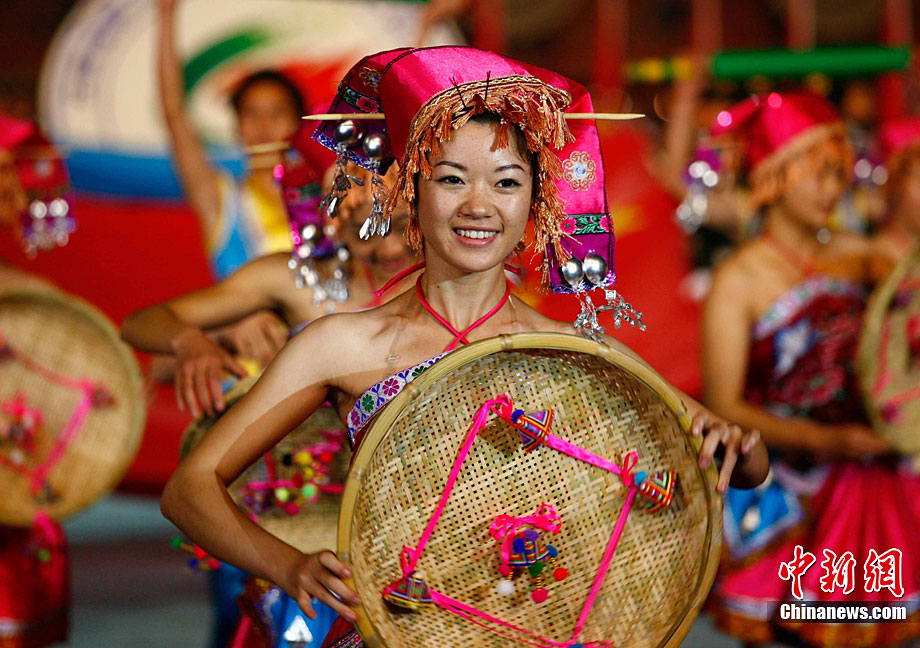 11月16日晚,云南省第九屆少數(shù)民族傳統(tǒng)運(yùn)動(dòng)會(huì)在云南省普洱市開(kāi)幕。云南是一個(gè)多民族的邊疆省份,來(lái)源于生活的民族傳統(tǒng)體育歷史悠久,特色鮮明,深受各族人民的喜愛(ài)。圖為佤族舞者精彩的表演吸引觀眾的目光。中新社記者 劉冉陽(yáng) 攝