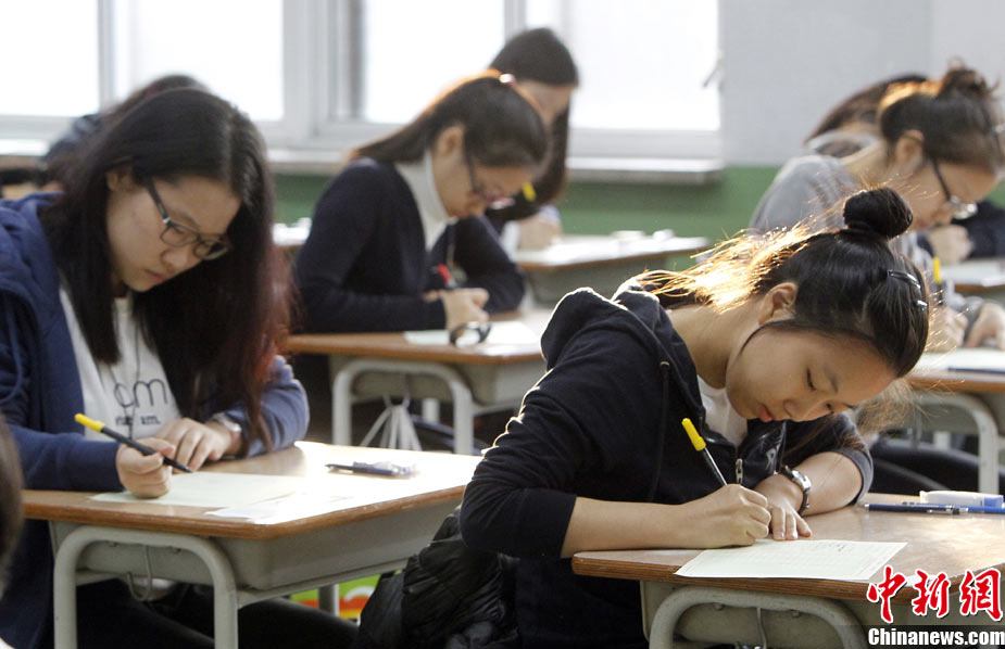 11月18日,韓國(guó)2011年度高考在82個(gè)考區(qū)的1206個(gè)考場(chǎng)同時(shí)舉行。