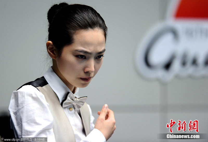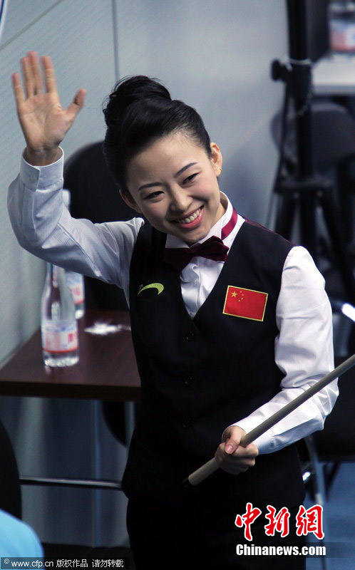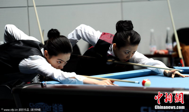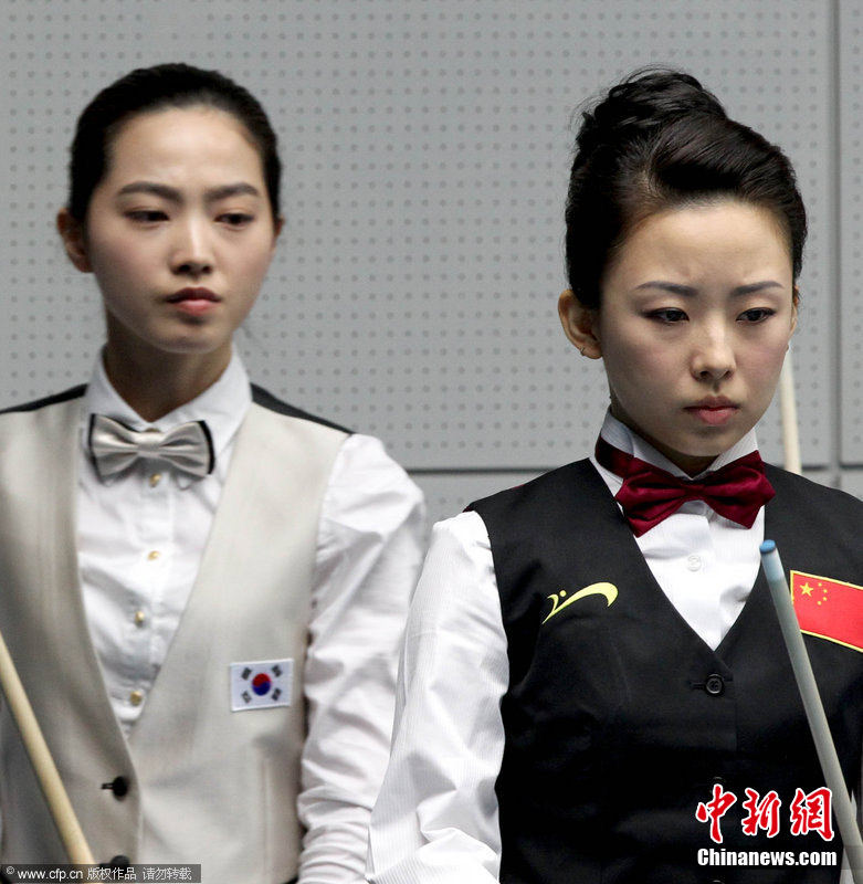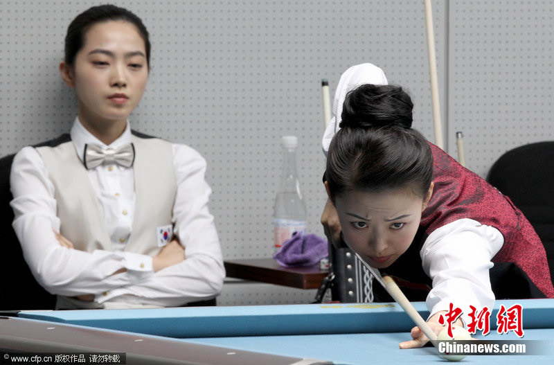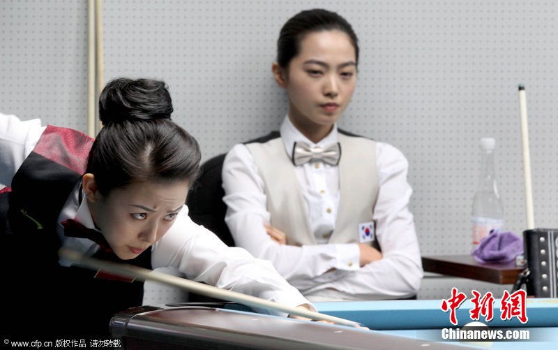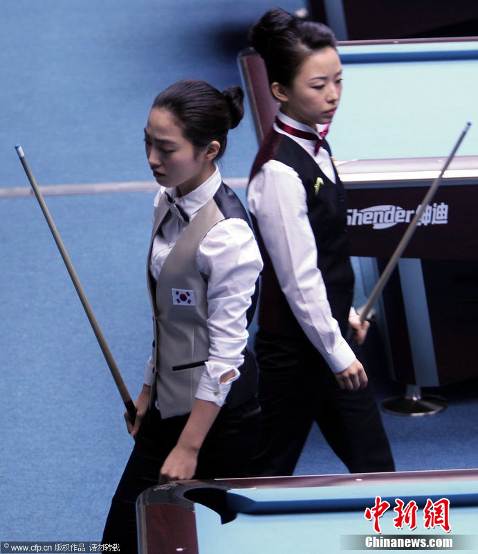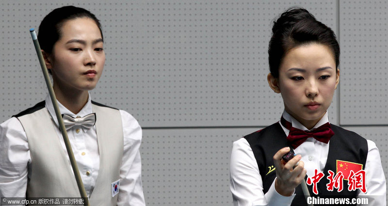 11月18日,2010廣州亞運(yùn)會女子美式9球單打1/4決賽,兩位公認(rèn)的臺壇美女展開激烈爭奪,最終,中國選手潘曉婷以7:6的最終比分戰(zhàn)勝韓國的車侑藍(lán)(車俞嵐)晉級下一輪。圖片來源:cfp視覺中國