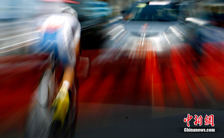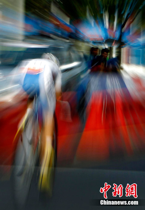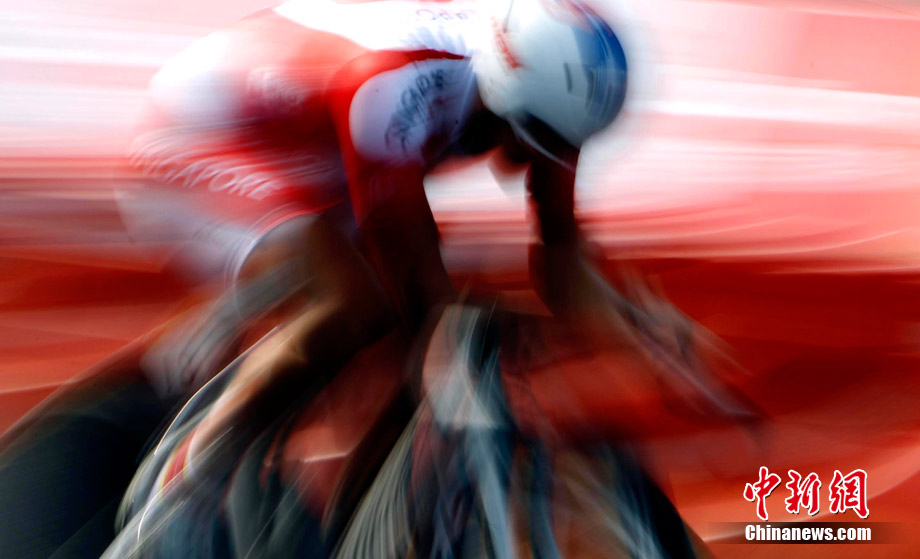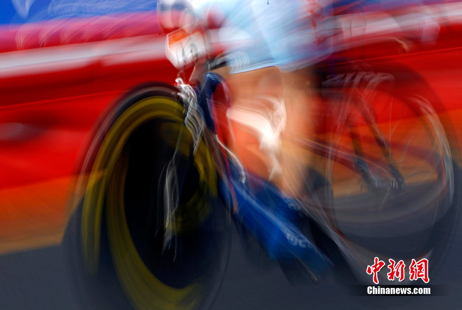 11月20日,廣州亞運(yùn)會(huì)男子公路個(gè)人計(jì)時(shí)賽中的動(dòng)感瞬間,仿佛將人帶入一個(gè)新奇的科幻世界。中新社記者 杜洋 攝