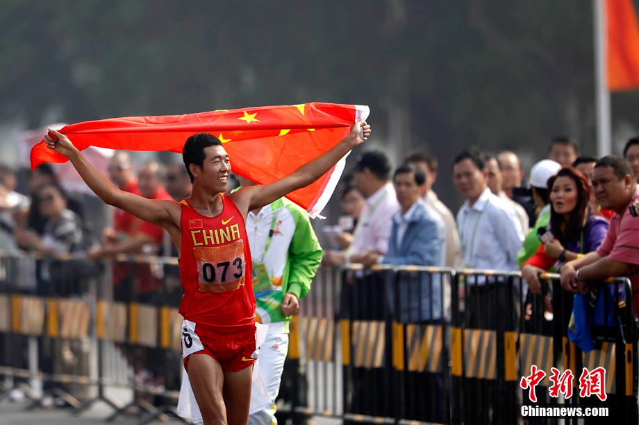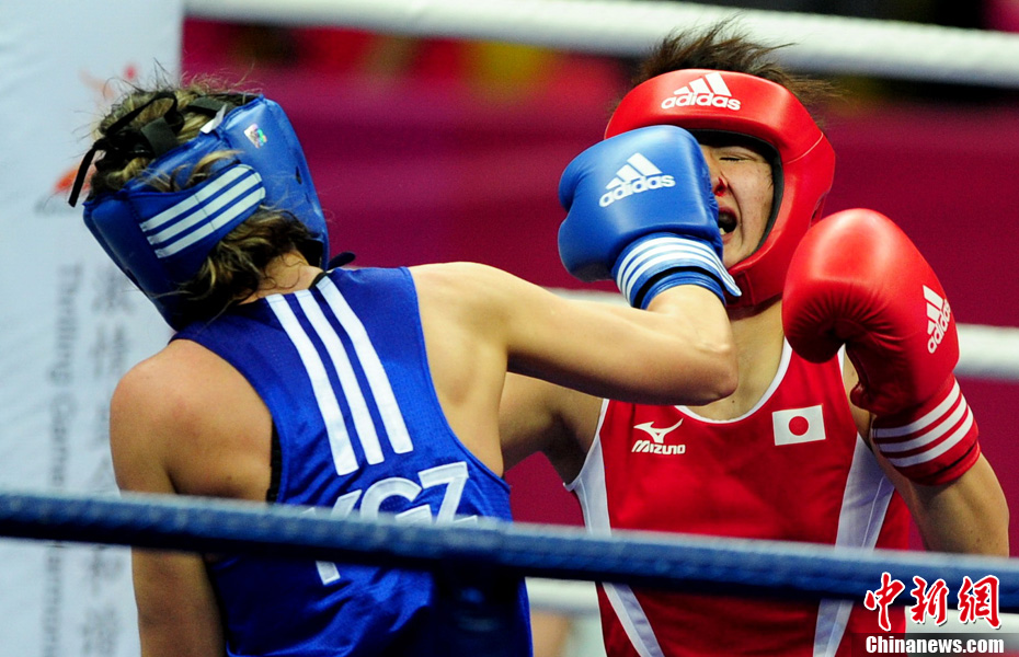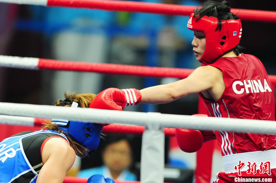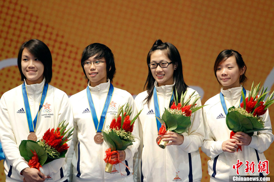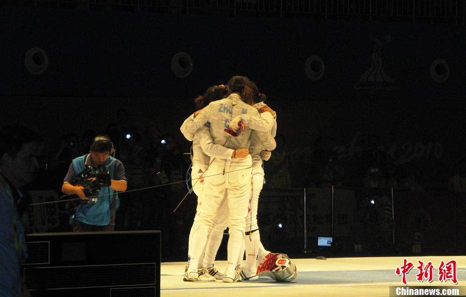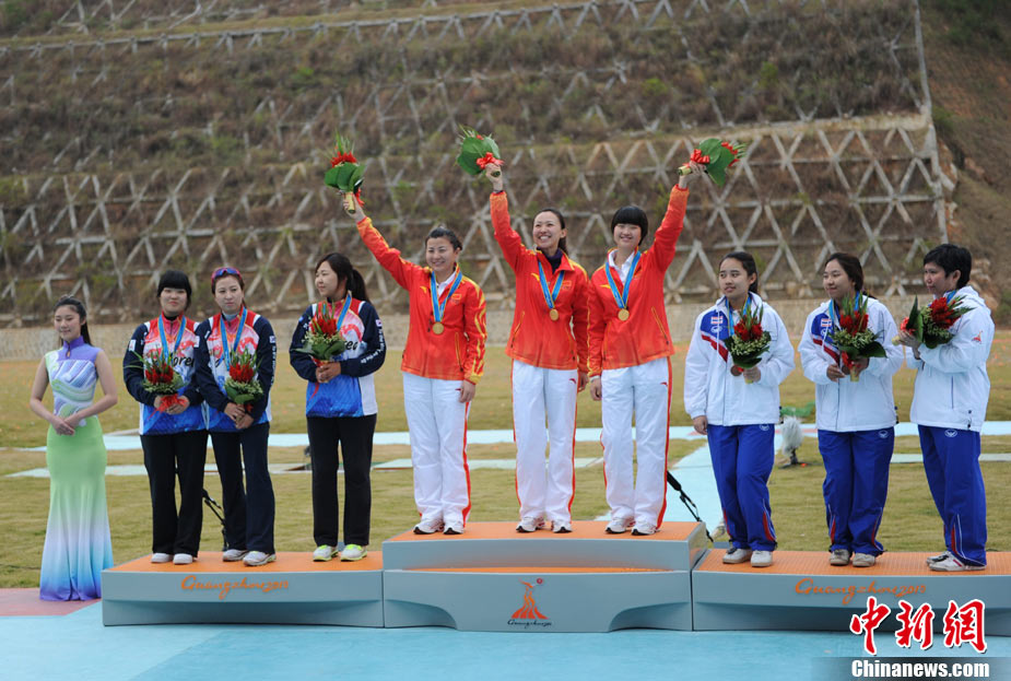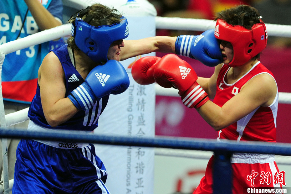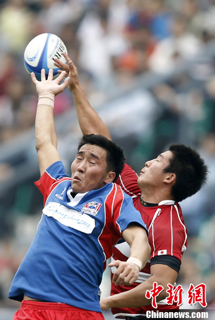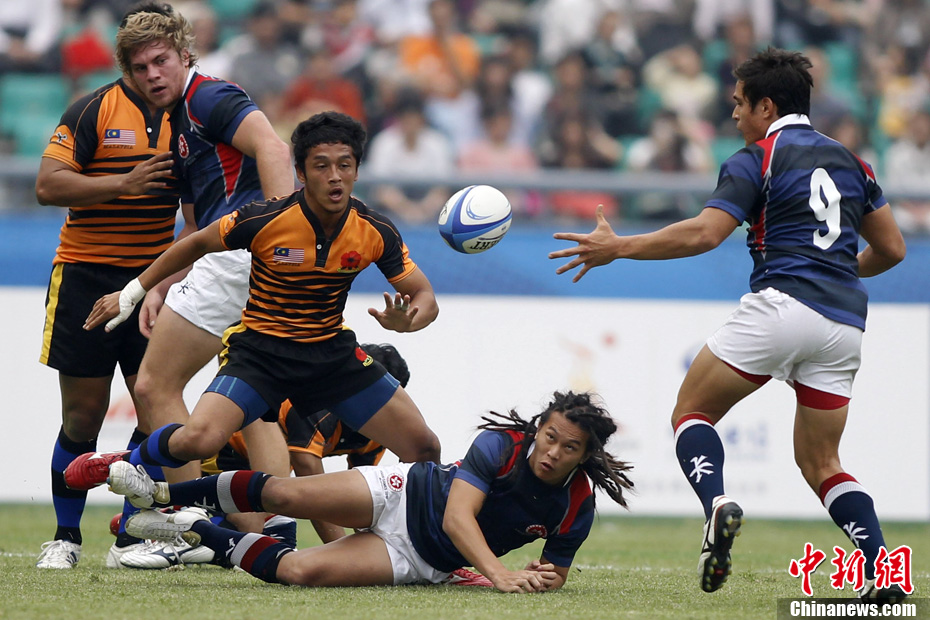 11月21日,廣州亞運(yùn)會(huì)橄欖球比賽拉開帷幕,首場(chǎng)揭幕戰(zhàn)中,中國(guó)女隊(duì)(紅)51比0大勝韓國(guó)女隊(duì)。中新社記者 盛佳鵬 攝