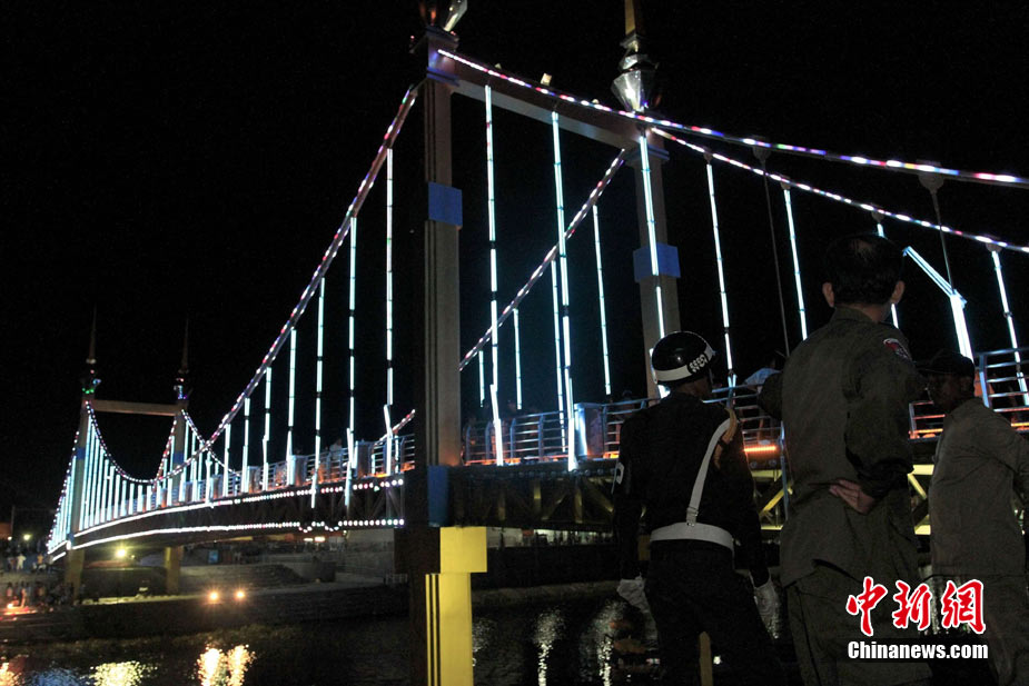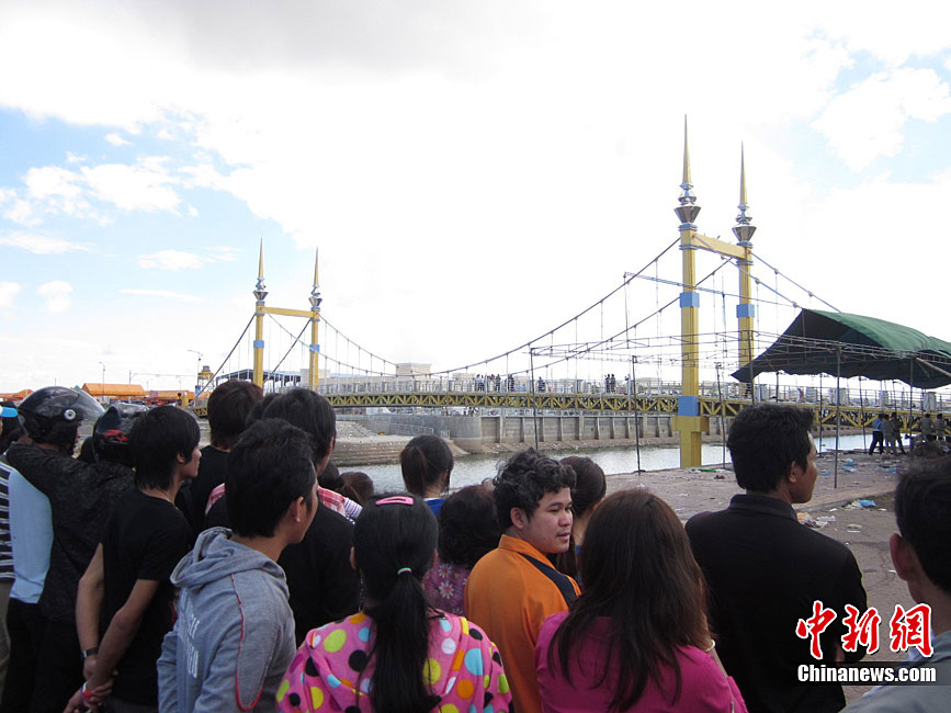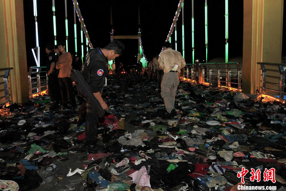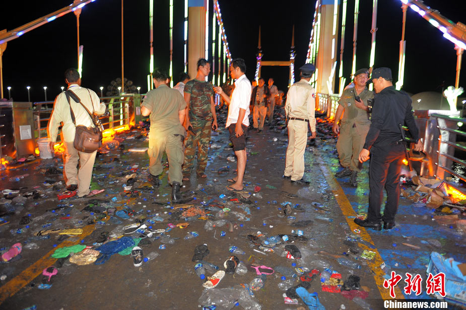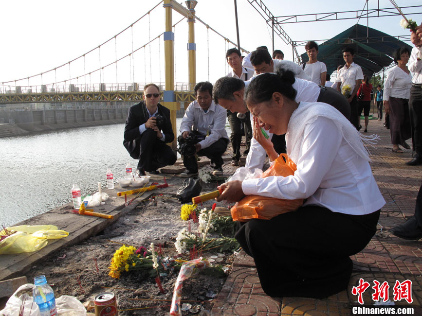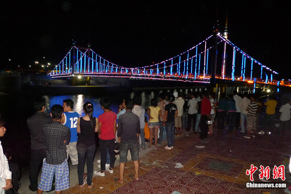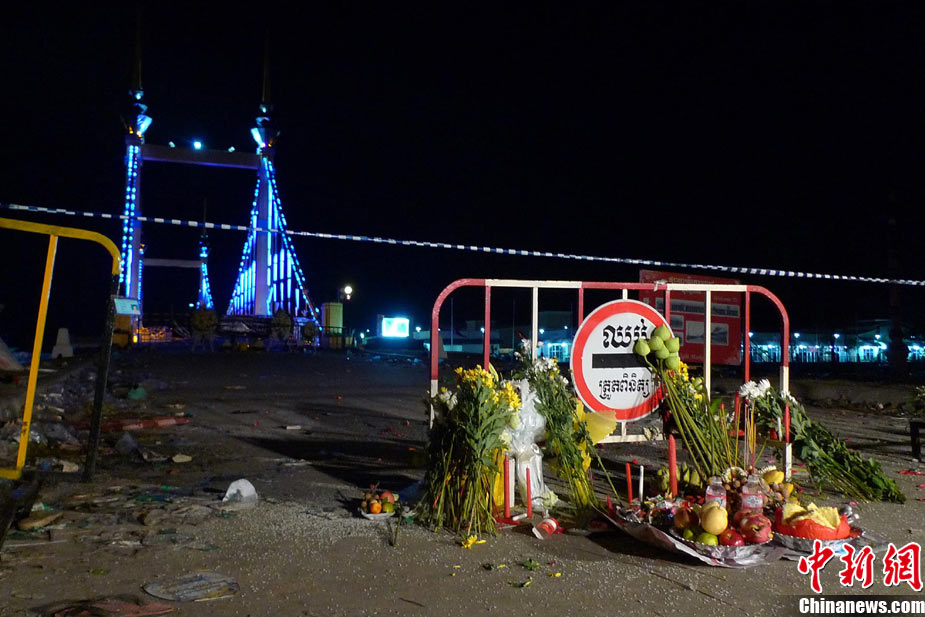 柬埔寨金邊鉆石大橋23日凌晨發(fā)生踩踏慘劇,目前已有逾一千一百人死傷。圖為柬埔寨民眾在鉆石大橋附近憑吊遇難者。