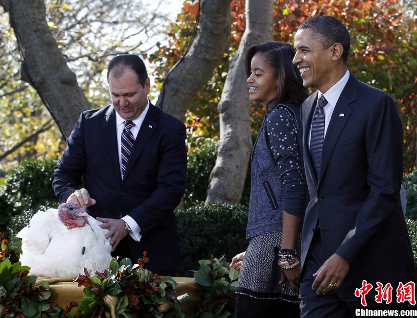 11月24日,兩只分別名叫“蘋果”和“蘋果汁”的加州火雞今天成了全美數(shù)億同類中的幸運兒,在感恩節(jié)前一天,它們得到了“免死金牌”——美國總統(tǒng)奧巴馬依照傳統(tǒng)當天親自赦免了它們。