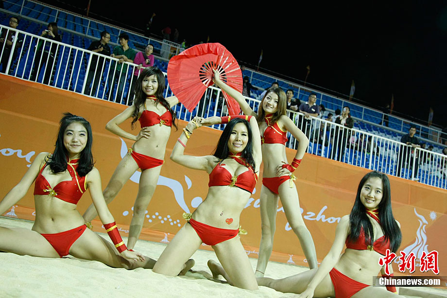 11月24日,廣州亞運會男子沙灘排球奪冠戰(zhàn)落下戰(zhàn)幕,沙灘寶貝們的難忘營地和精彩表演也就此謝幕。中新社記者 張茵 攝