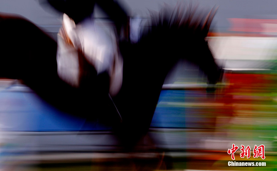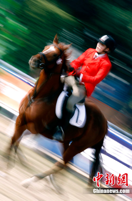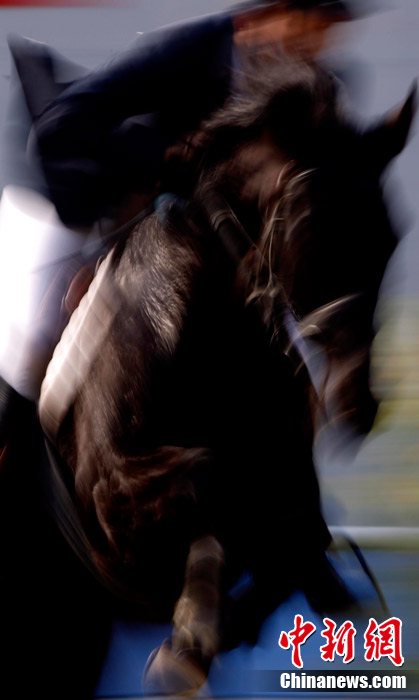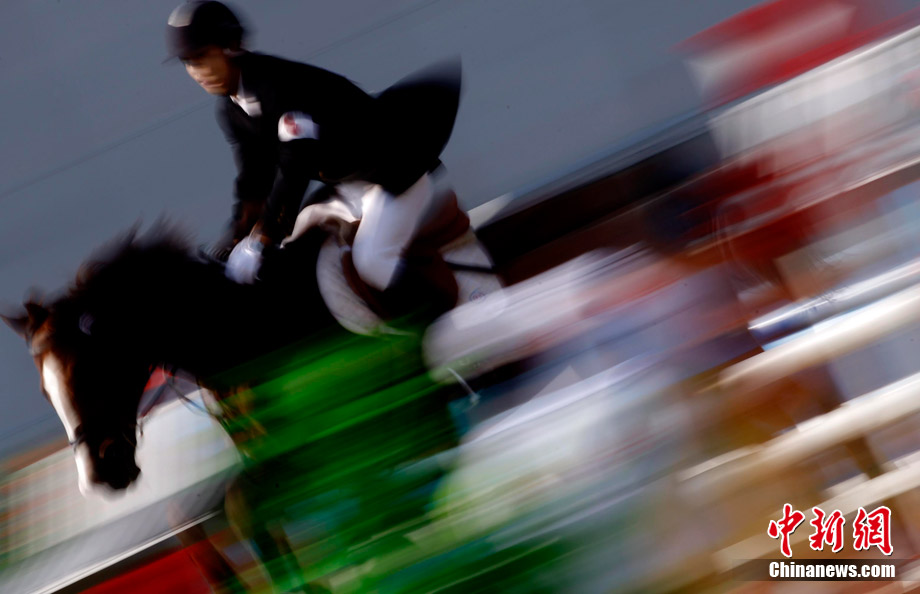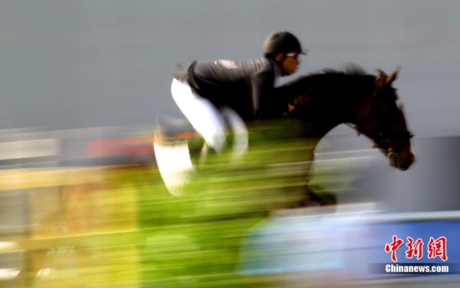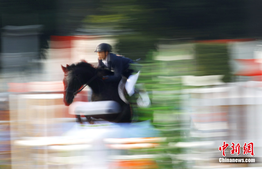 2010廣州亞運(yùn)會(huì)現(xiàn)代五項(xiàng)馬術(shù)賽場(chǎng)精彩瞬間。中新社記者 杜洋 攝