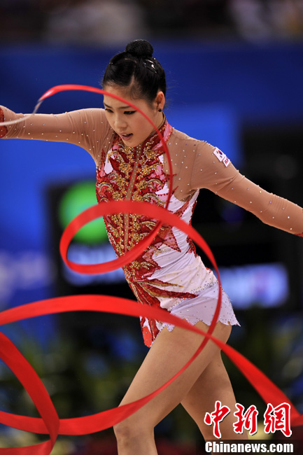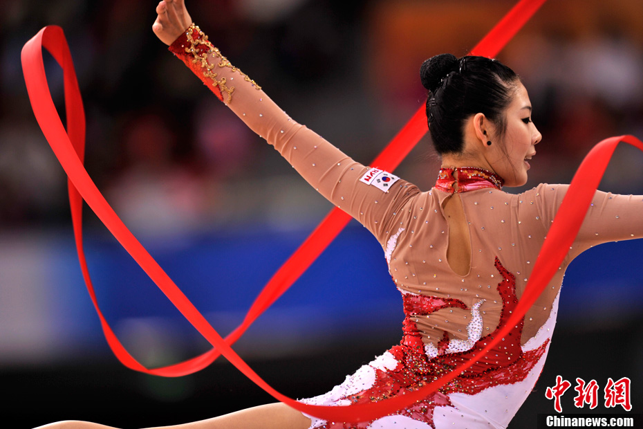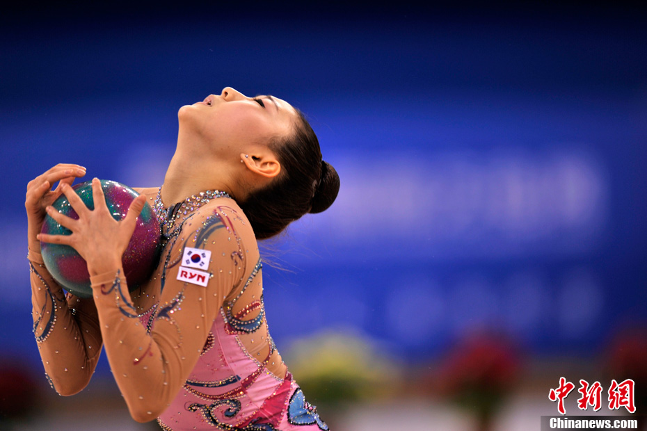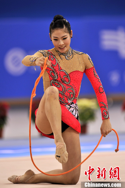 11月25日,亞運會上最“唯美”的項目藝術(shù)體操正式開賽,90后的小選手們纖細(xì)曼妙的身材、柔美而富有韻律的動作成為亞運賽場最美的風(fēng)景線。中新網(wǎng)記者 金碩 攝