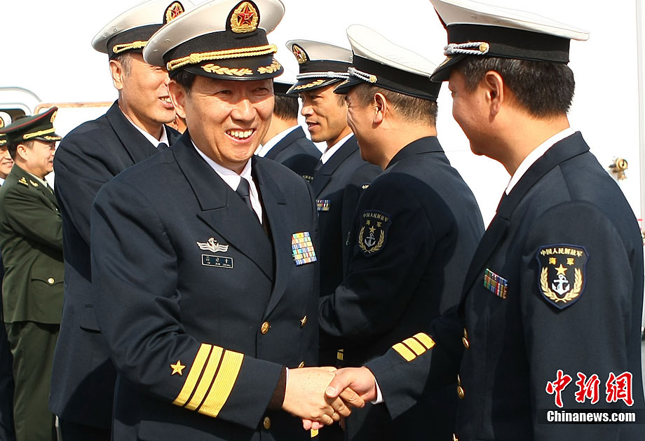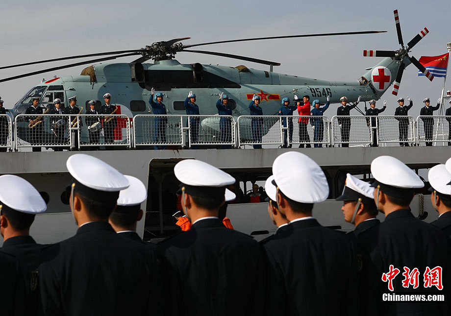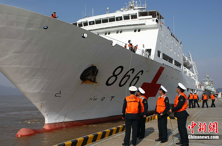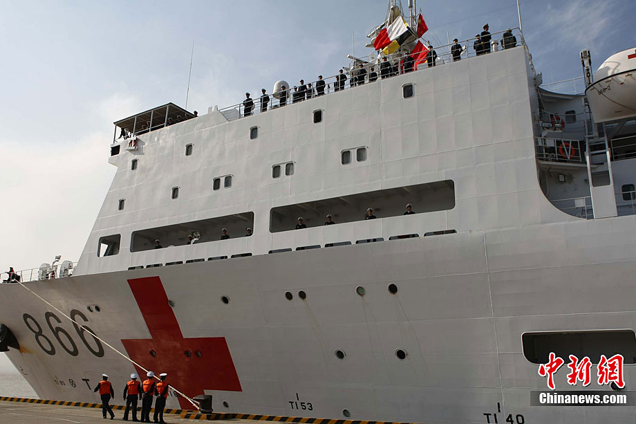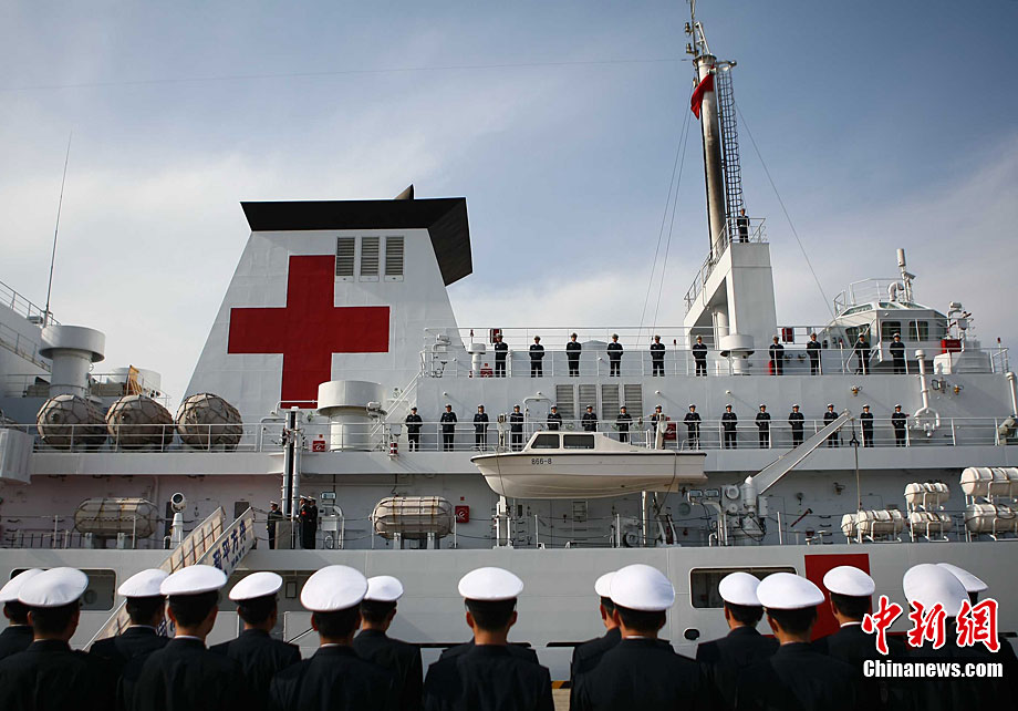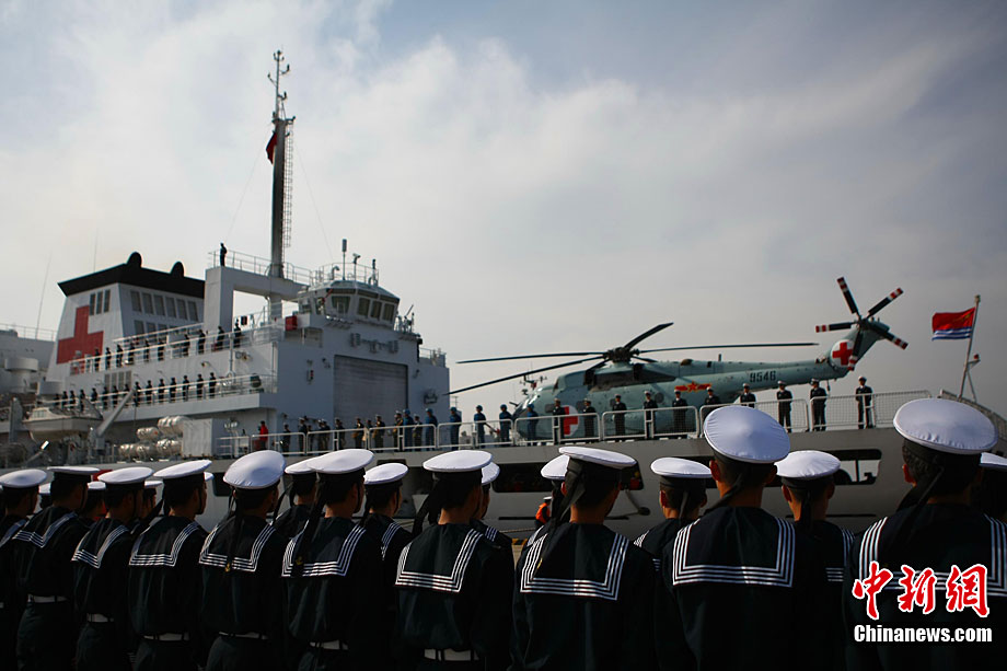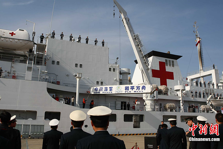 11月26日上午10時,中國海軍萬噸級醫(yī)院船“和平方舟”安全駛抵舟山軍港,這支歷時88天、航程17800海里的海上醫(yī)療隊、為海軍護航官兵和吉布提、肯尼亞、坦桑尼亞、塞舌爾和孟加拉等國民眾體檢2127人,門診診治12806人、醫(yī)療巡診1858人,輔助檢查15537人次,成功實施手術97例,贈送藥材36類790種。海軍副政委徐建中中將迎接執(zhí)行任務的官兵歸來。宋吉河 攝