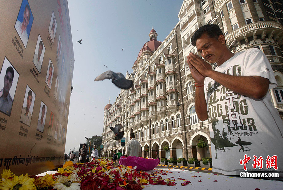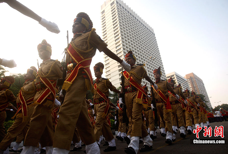11月26日,警察在印度孟買(mǎi)的海濱大道上舉行閱兵式,悼念恐怖襲擊事件中的遇難者并表達(dá)反恐決心。2008年11月26日夜至29日,印度商業(yè)中心孟買(mǎi)的泰姬馬哈酒店、奧貝羅伊酒店、猶太人中心以及孟買(mǎi)火車(chē)站等地遭遇連環(huán)恐怖襲擊,造成至少195人死亡,大約300人受傷。