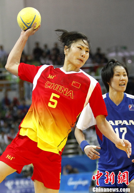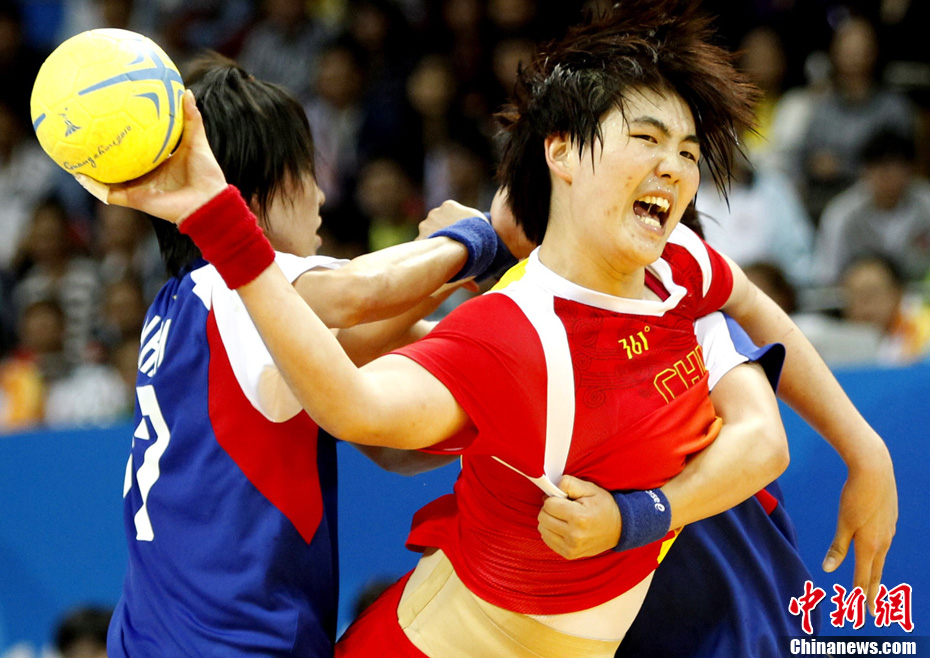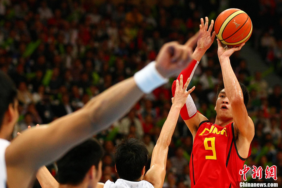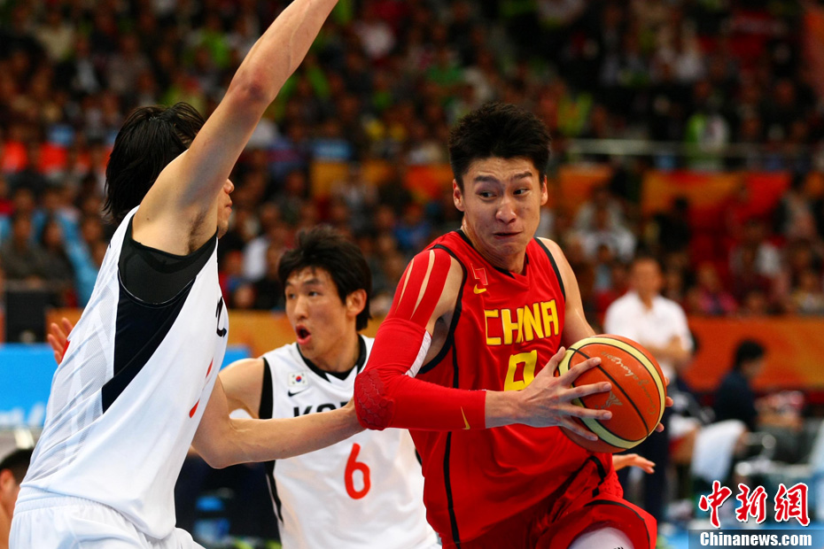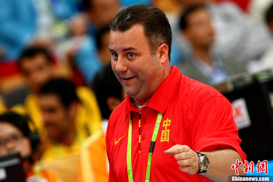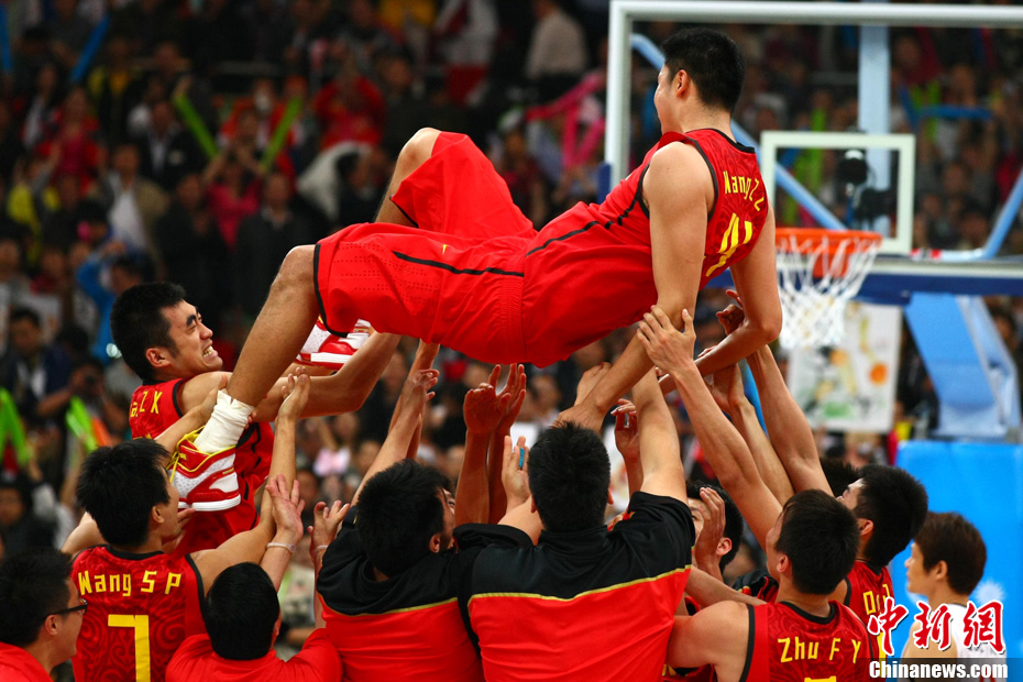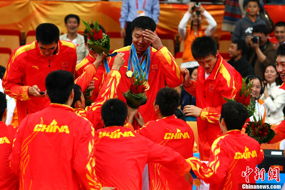 11月26日晚,2010亞運(yùn)會(huì)男籃決賽,中國(guó)隊(duì)77-71戰(zhàn)勝韓國(guó)奪冠。圖為中國(guó)隊(duì)隊(duì)員向王治郅鞠躬致意。中新社記者 富田 攝