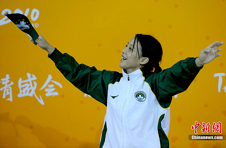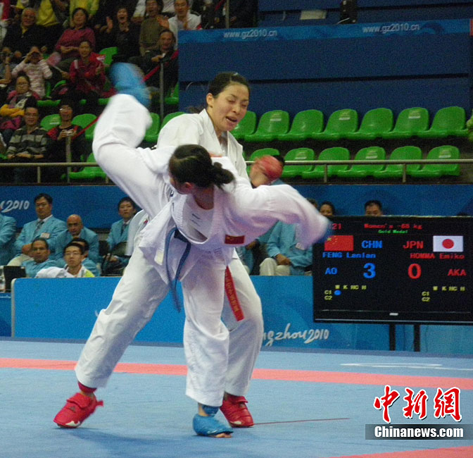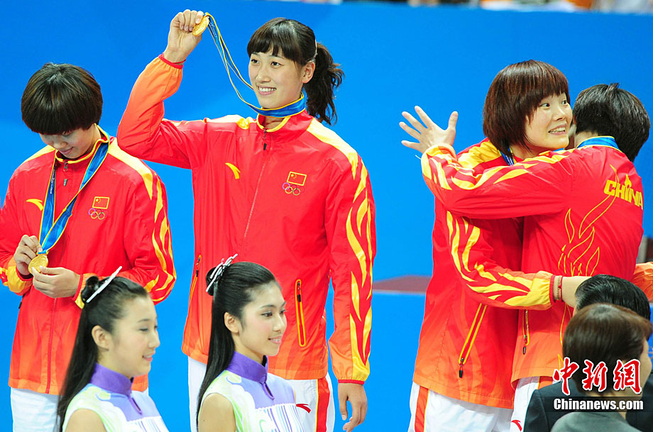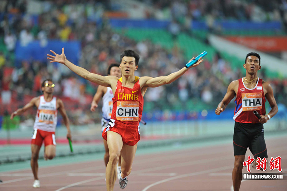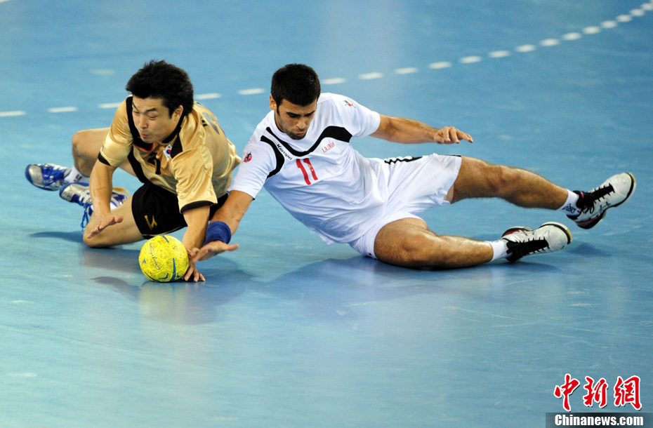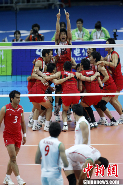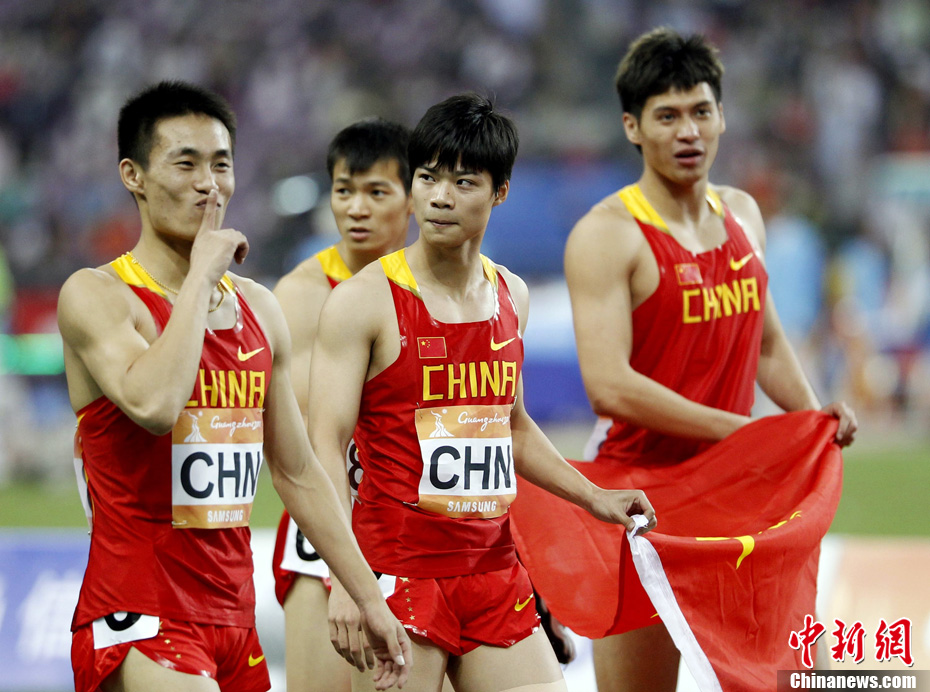 11月26日晚,2010亞運(yùn)會(huì)男籃決賽,中國(guó)隊(duì)77-71戰(zhàn)勝韓國(guó)奪冠。圖為中國(guó)隊(duì)隊(duì)員向王治郅鞠躬致意。中新社記者 富田 攝