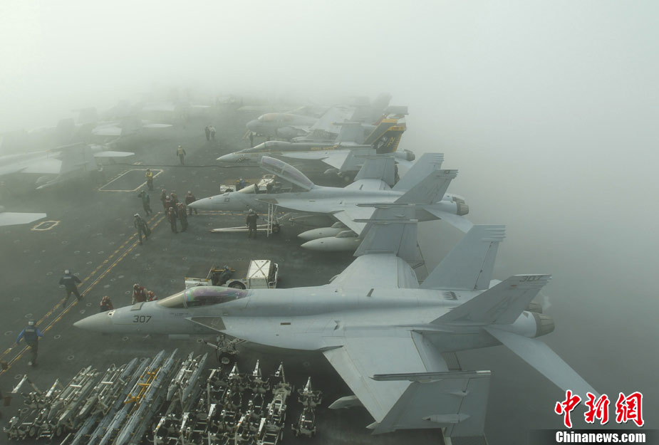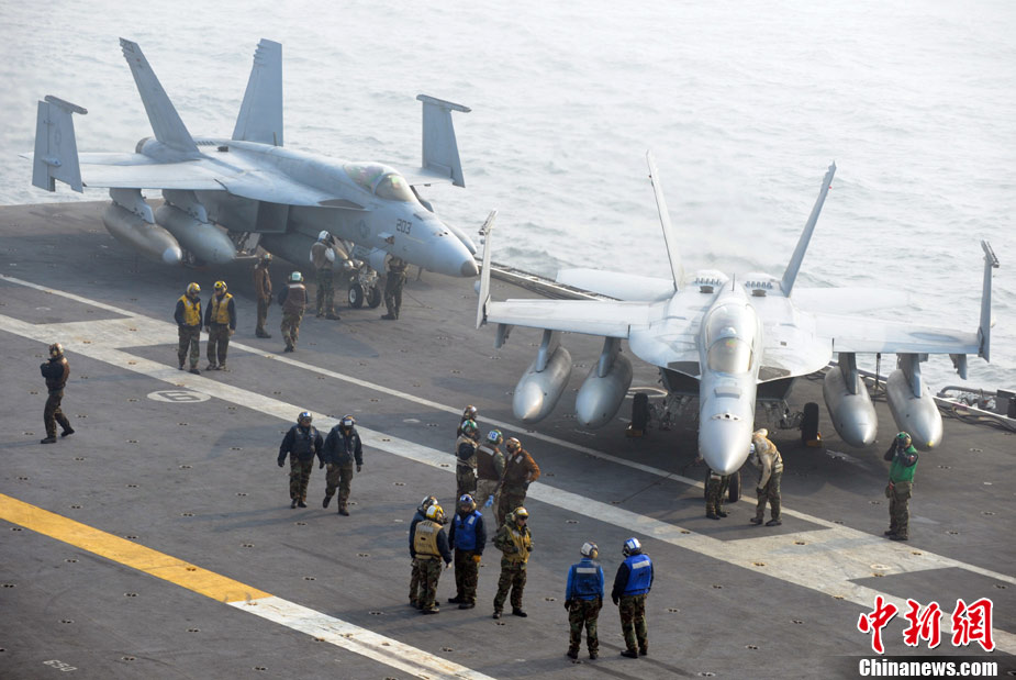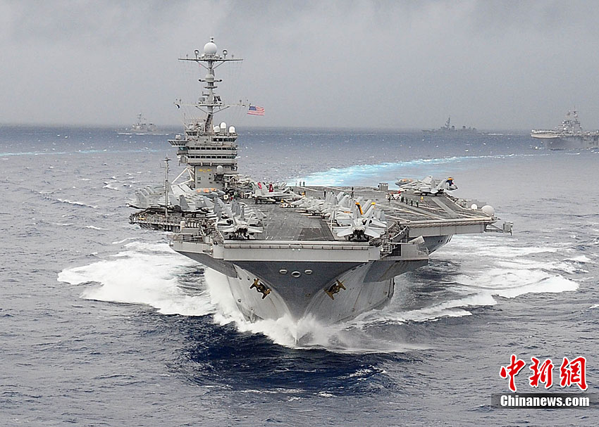 11月28日,韓美聯(lián)合軍事演習(xí)在黃海海域舉行。美軍派出“喬治·華盛頓”號航母、9600噸級巡洋艦及9750噸級驅(qū)逐艦參加演習(xí)。韓軍也投入7600噸級“世宗大王”艦、兩艘4500噸級驅(qū)逐艦以及巡邏艦、護(hù)航艦、戰(zhàn)斗支援艦和反潛飛機(jī)等參加演習(xí)。圖為11月17日,美國“喬治·華頓頓”號航母在日本沖繩附近演習(xí)。