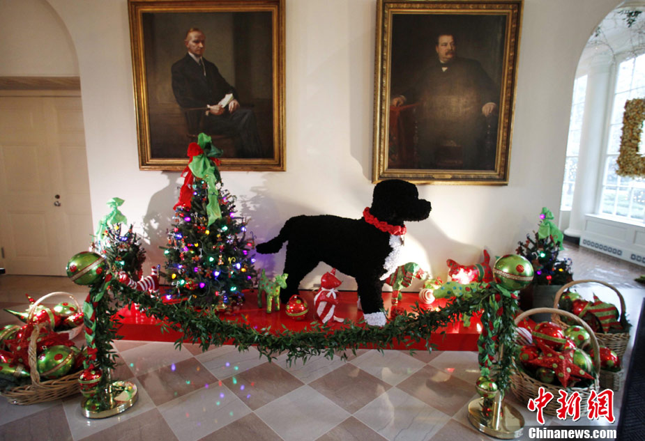 12月1日,美國華盛頓,白宮圣誕樹亮相藍(lán)廳,今年的裝飾主題是“簡單禮物”。