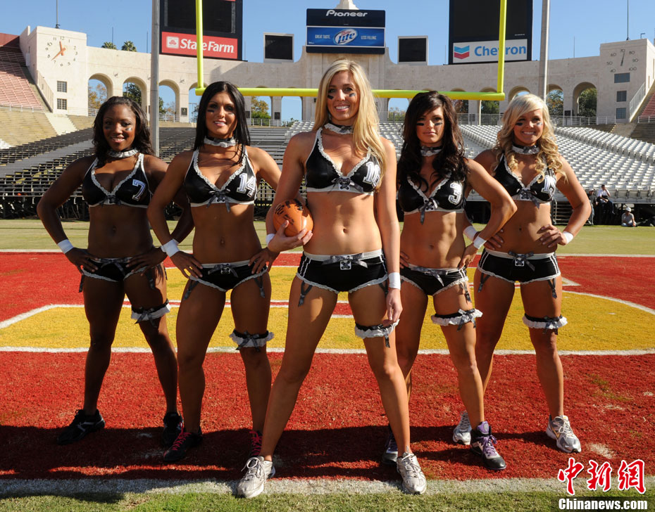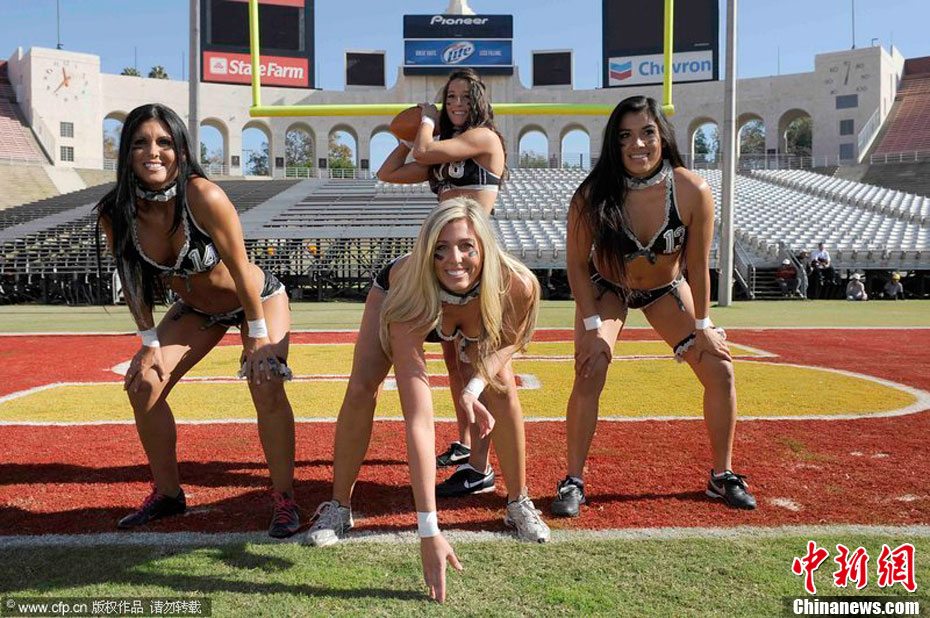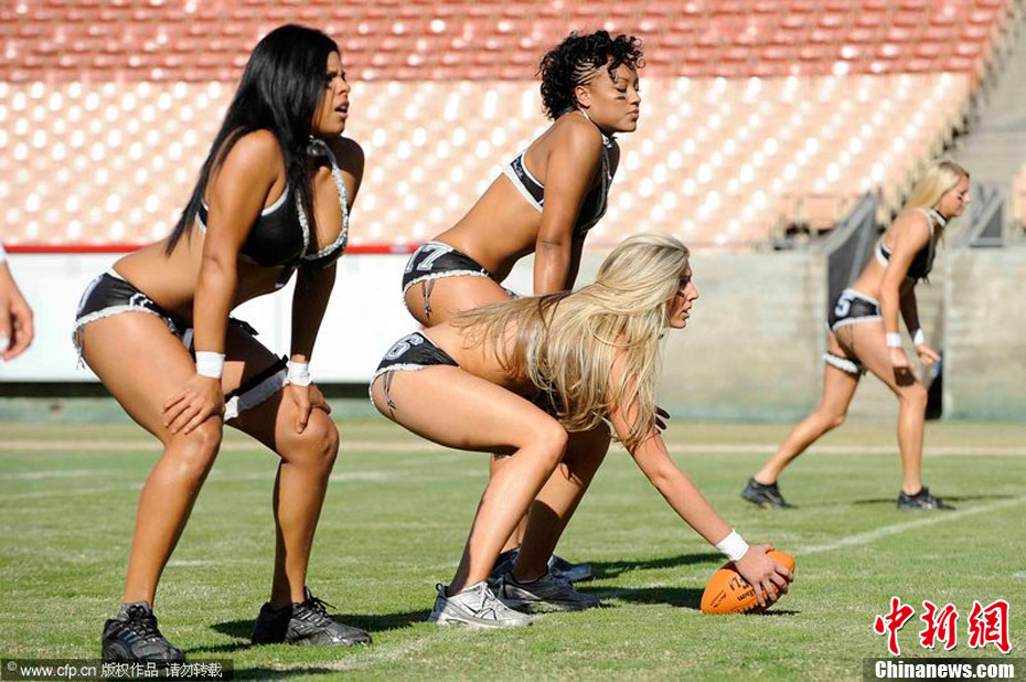 洛杉磯女子內(nèi)衣橄欖球隊(duì)員展示性感身段