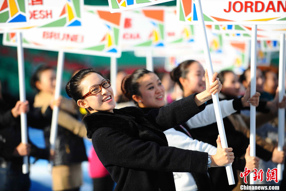 12月4日10時(shí)整,廣州2010年亞洲殘疾人運(yùn)動(dòng)會(huì)火炬點(diǎn)燃暨火炬?zhèn)鬟f活動(dòng)在北京人民大會(huì)堂北大廳啟動(dòng)。北京站傳遞活動(dòng)有20棒火炬手,整個(gè)火炬?zhèn)鬟f活動(dòng)圍繞天安門廣場(chǎng)北廣場(chǎng)進(jìn)行。中新社記者 劉震 攝