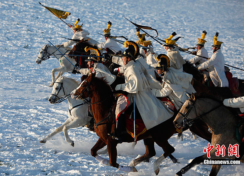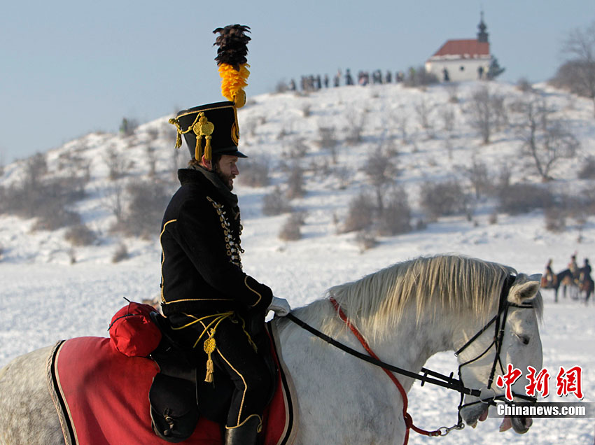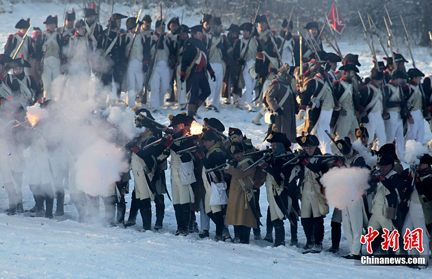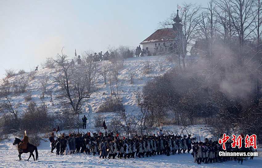 當?shù)貢r間12月4日,捷克斯拉夫卡夫市,為紀念“三皇之戰(zhàn)'205周年,歷史軍事發(fā)燒友俱樂部的成員還原了當時的戰(zhàn)爭場景。位于歐洲大陸中部的奧斯特利茨1805年12月2日爆發(fā)一場決定性戰(zhàn)役,對陣雙方分別是代表歐洲專制傳統(tǒng)的奧地利神圣羅馬帝國和沙皇俄國聯(lián)軍,以及乘大革命風(fēng)潮而起的法蘭西第一帝國軍隊。這場戰(zhàn)役又稱“三皇之戰(zhàn)”,因為交戰(zhàn)雙方指揮官分別是神圣羅馬帝國皇帝弗朗茲二世、沙皇亞歷山大一世和法蘭西第一帝國皇帝拿破侖一世。