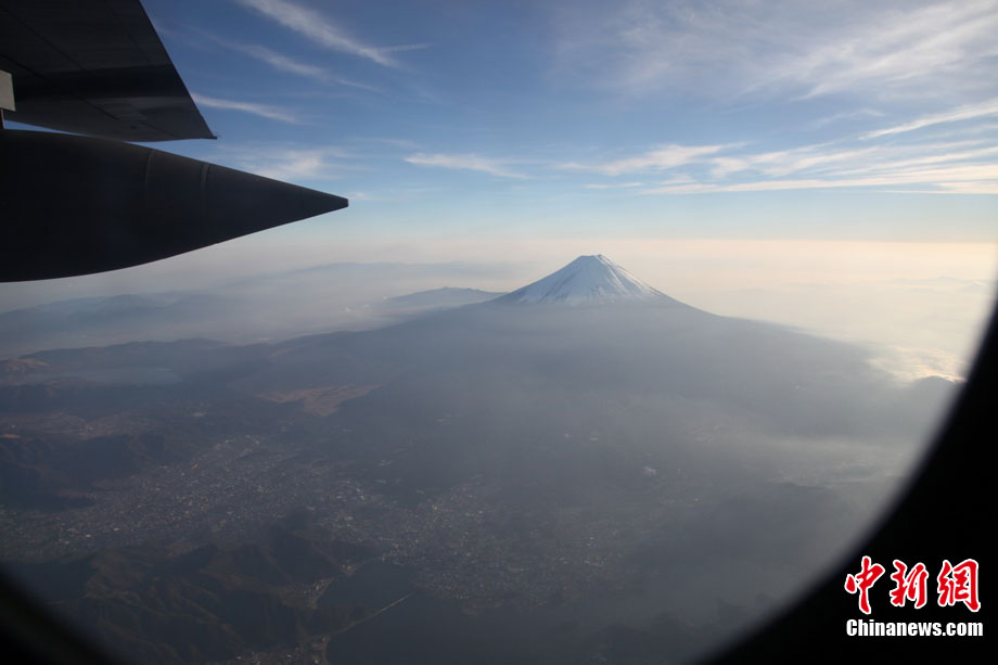 12月6日,為期8天的日美聯(lián)合軍演進(jìn)入第四天,駐日美軍橫田航空基地C-130H型“大力神”運(yùn)輸機(jī)參與演習(xí)中的空中防御和護(hù)航演練。圖為C130在演習(xí)中途經(jīng)富士山。中新社發(fā) 孫冉 攝