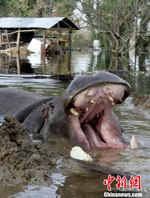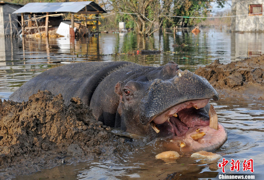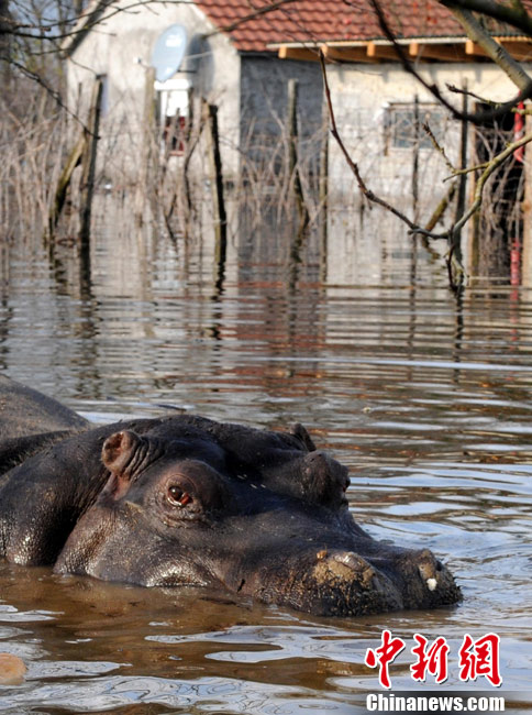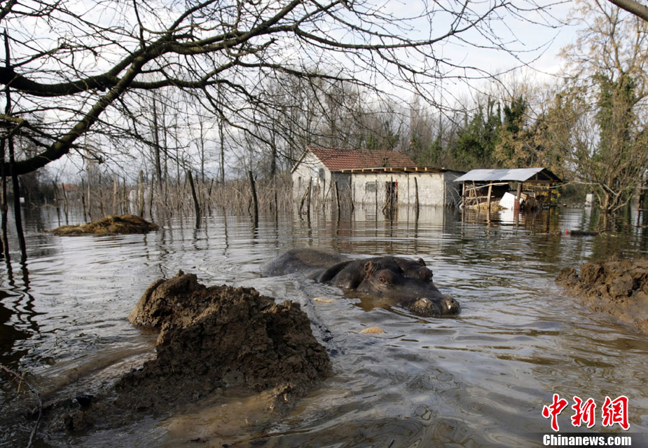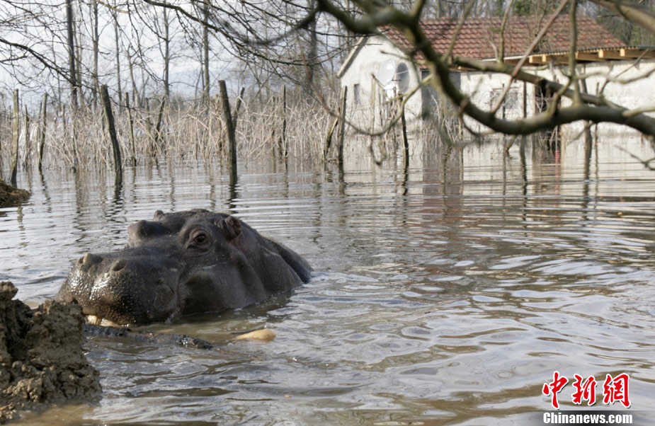巴爾干半島大雨成災(zāi) 動(dòng)物園河馬出逃