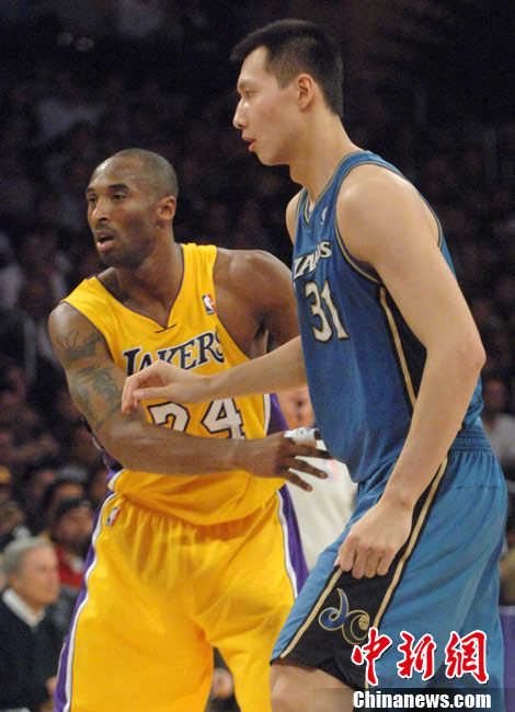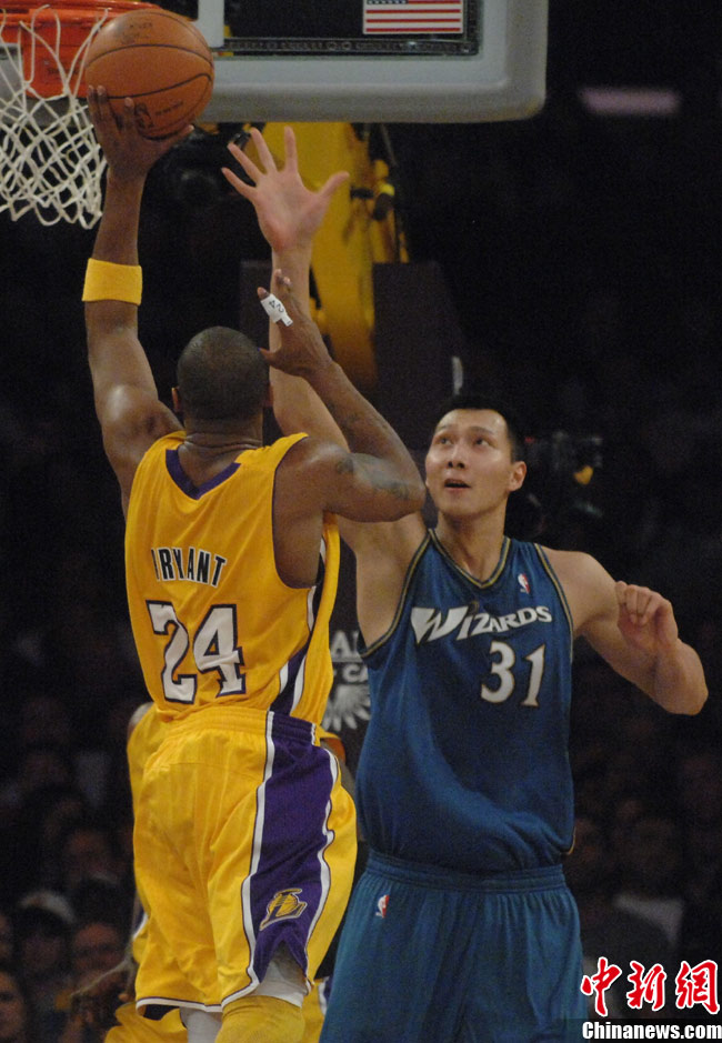 當(dāng)?shù)貢r(shí)間12月7日晚,華盛頓奇才隊(duì)在洛杉磯客場挑戰(zhàn)洛杉磯湖人隊(duì),由于奇才主力前鋒安德雷賽前左臀撞傷,中國球員易建聯(lián)先發(fā)上陣,這是易建聯(lián)本賽季首次先發(fā)。上半場奇才以56比69落后,易建聯(lián)拿下5分。中新社發(fā) 張煒 攝