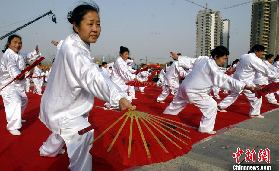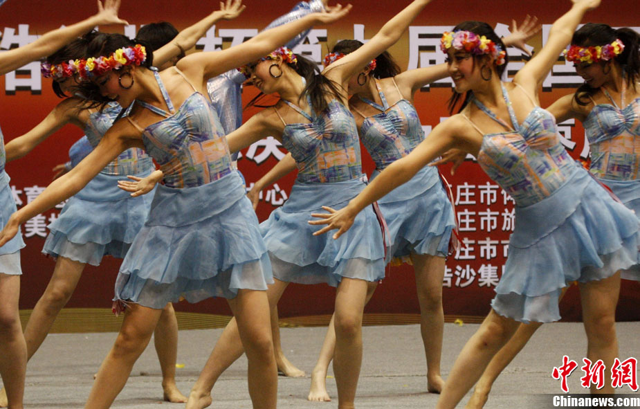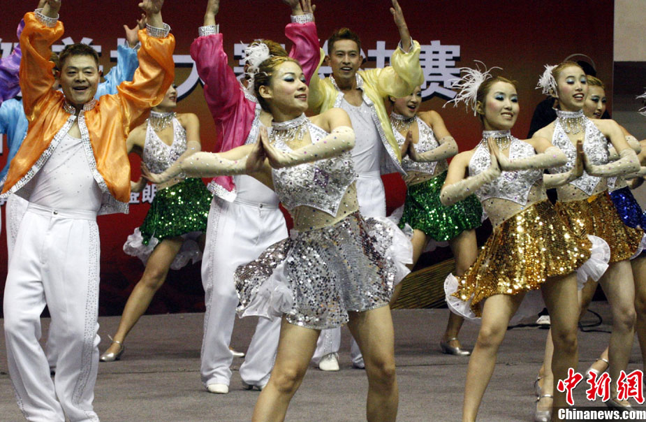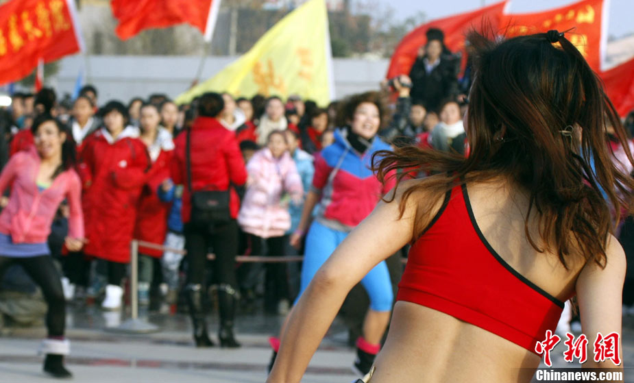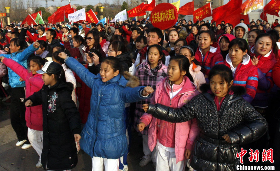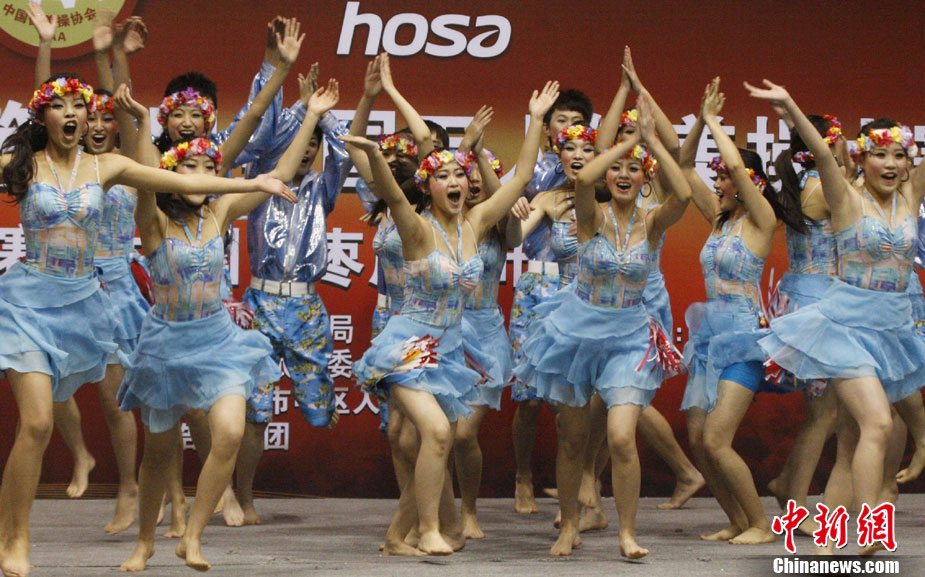 12月9日,由中國國家體育總局體操運動管理中心、中國健美操協(xié)會、浩沙國際健身管理有限公司以及山東省棗莊市市中區(qū)聯(lián)合主辦的2010年第9屆“浩沙杯”中國內(nèi)地萬人健美操大賽在山東棗莊拉開帷幕,來自中國內(nèi)地20個分賽區(qū)的1700余名選手匯聚一地,大賽包括少兒組、中學(xué)組、大專學(xué)院組、健身俱樂部組、中老年組、家庭組等共10個組別的賽事項目。圖為 “浩沙杯”中國內(nèi)地萬人健美操大賽在棗莊東湖廣場拉開帷幕。 中新社記者 錢興強 攝
