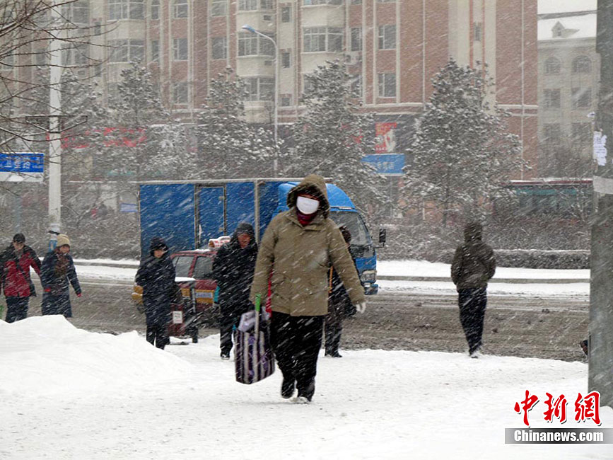 12月10日上午,長春街頭市民冒雪出行。從9日下午開始,吉林省遭遇大到暴雪,截至10日上午8時,長春市農(nóng)安縣降雪量最大,達到9.1毫米,雪深達12厘米。據(jù)悉,大雪致使長春龍嘉國際機場兩度關(guān)閉,共有9個進出港航班取消,千余名旅客滯留機場。中央氣象臺12月10日6時繼續(xù)發(fā)布暴雪藍色預警:12月10日08時至11日08時,遼寧東北部、吉林中東部、黑龍江大部等地有大雪(5~9毫米),其中,遼寧東北部的局地、吉林中東部偏北地區(qū)、黑龍江中東部偏南地區(qū)等地有暴雪(10~15毫米)。中新社發(fā) 李彥國 攝