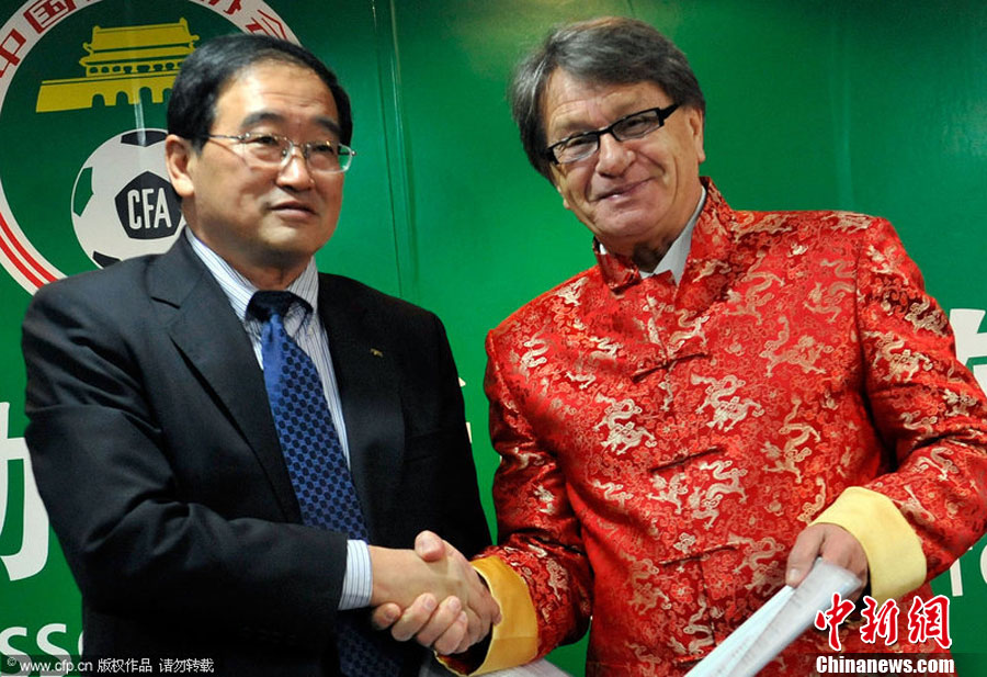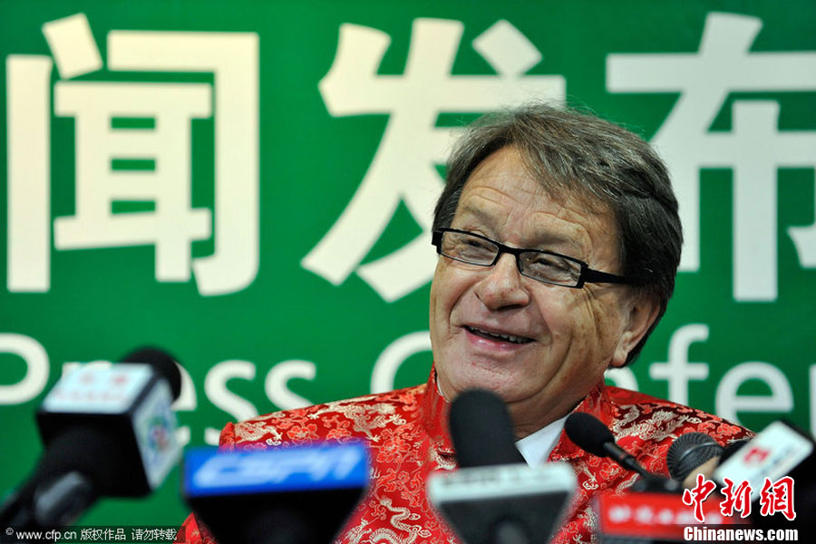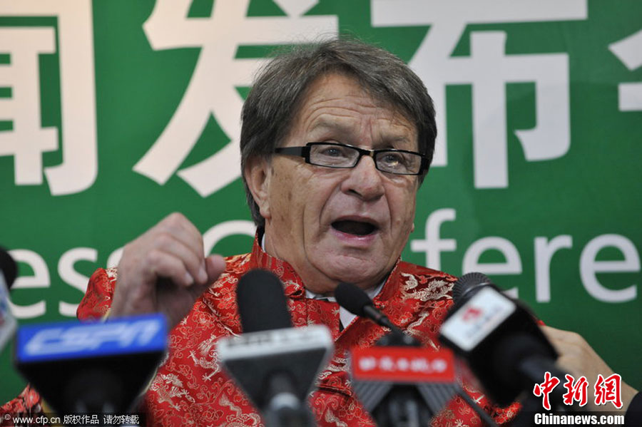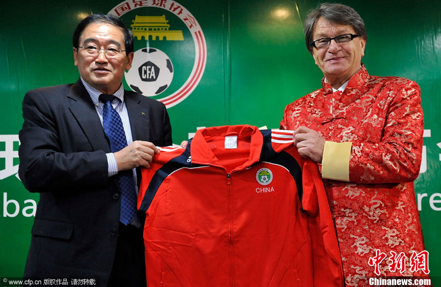 國奧新帥布拉澤維奇著唐裝出席發(fā)布會