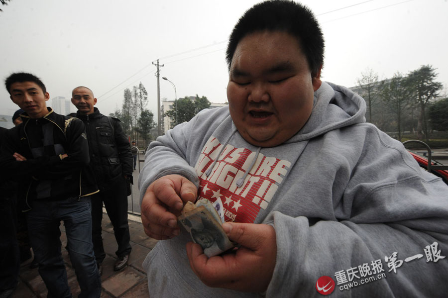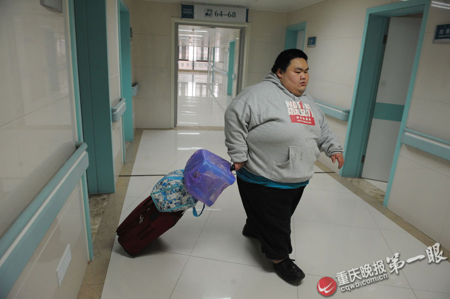 醫(yī)生介紹,入院前梁用有225公斤,目前體重保持在175公斤左右!八麥p肥的毅力不夠,不能完全按醫(yī)生的規(guī)定執(zhí)行!贬t(yī)生說,今年中秋梁用請假回家,那知短短一周體重就反彈了15公斤。“再也不敢那樣了,如果達到手術(shù)指標,早點手術(shù)當然好喲!”嘿嘿直笑的梁用稱,他再也不敢輕易出院了。