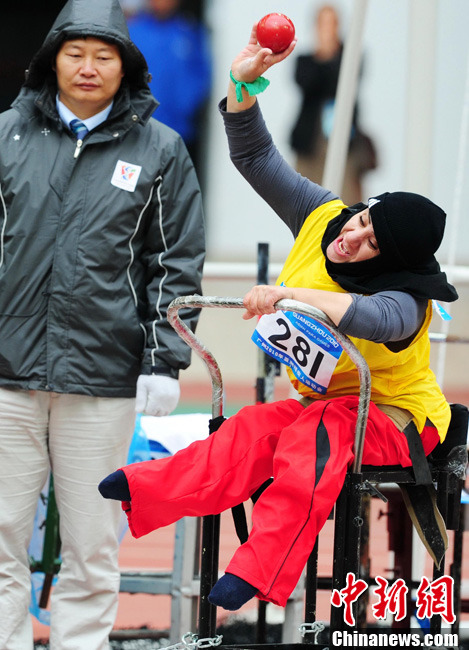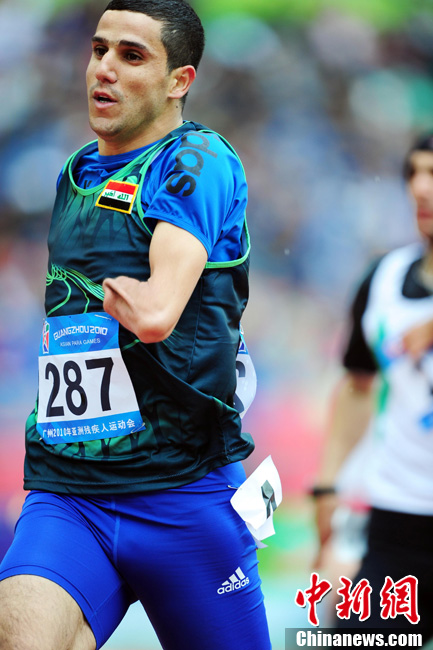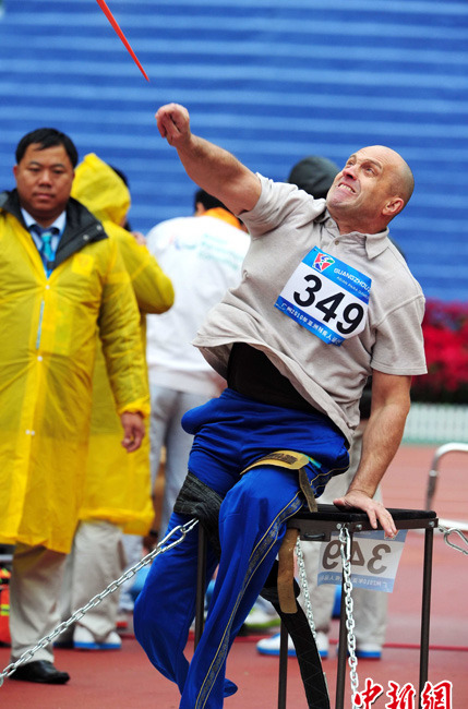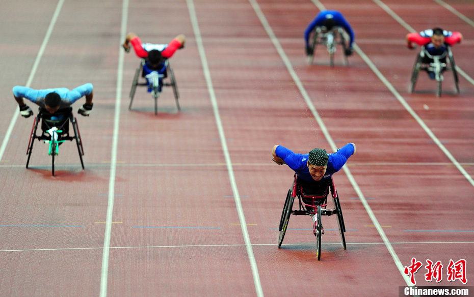 12月15日,廣州亞殘運(yùn)會(huì)田徑比賽進(jìn)入第2天,賽場上的男子T12級、T53級、T54級“雄鷹”在奧體中心飛翔。中新社記者 陳文 攝