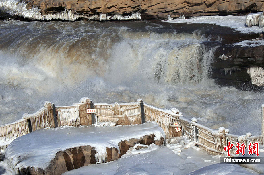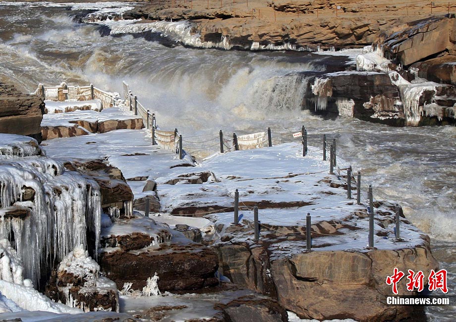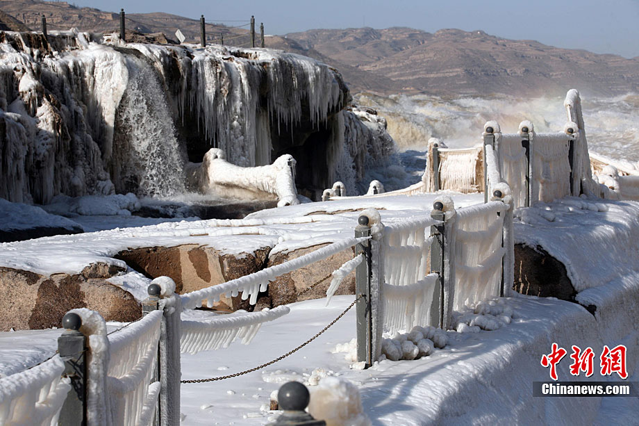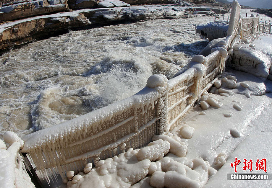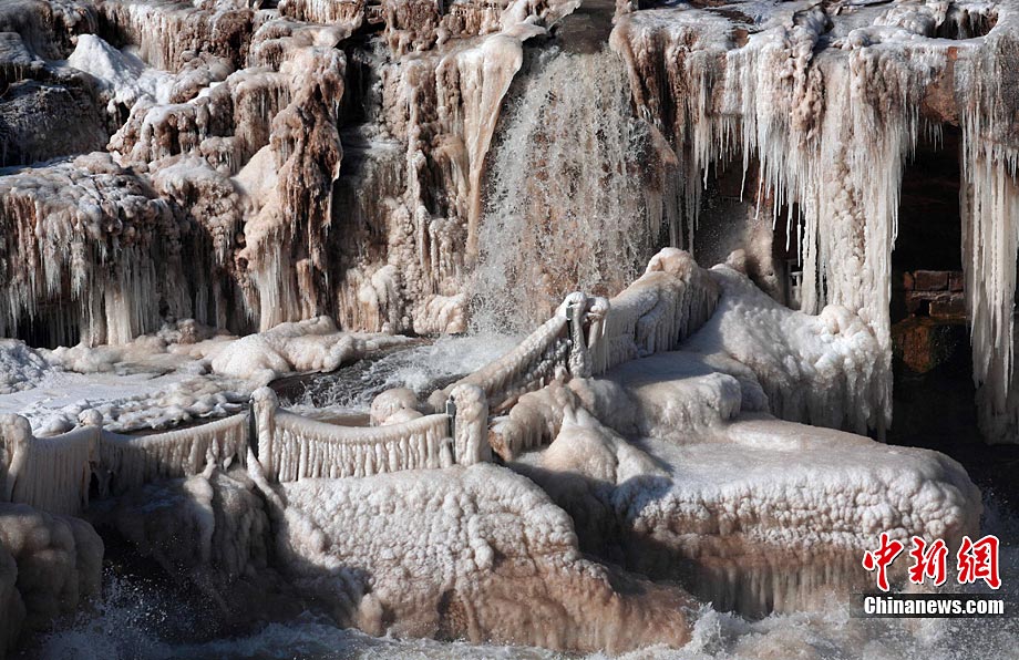 12月17日,黃河壺口冰凍瀑布在陽光照射下異常美麗,引得八方游客前來觀賞美景。據(jù)了解,這是由于近期受冷空氣影響,形成的美麗自然景觀。張旦 攝 圖片來源:CNSPHOTO