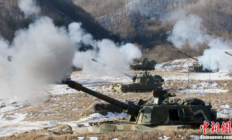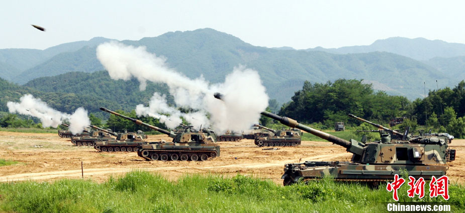 韓國軍方舉行海上實(shí)彈射擊訓(xùn)練