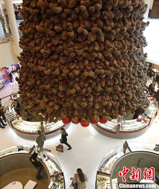 千只泰迪熊組成“泰迪圣誕樹(shù)”
