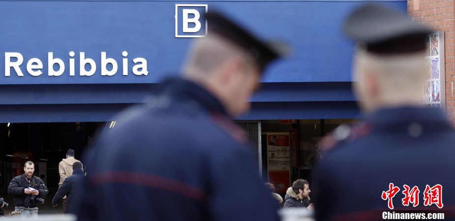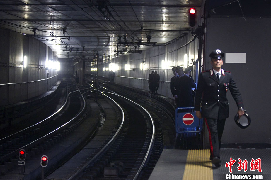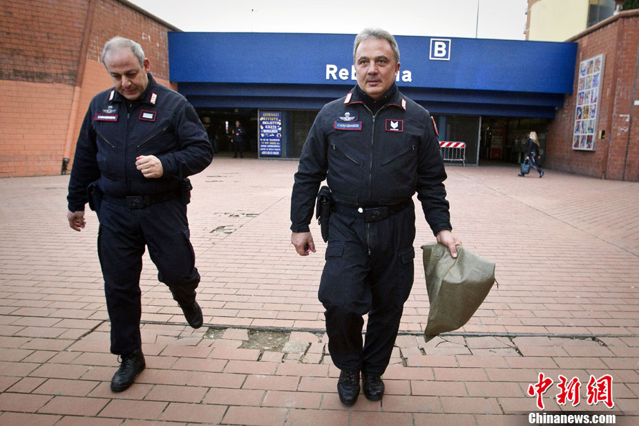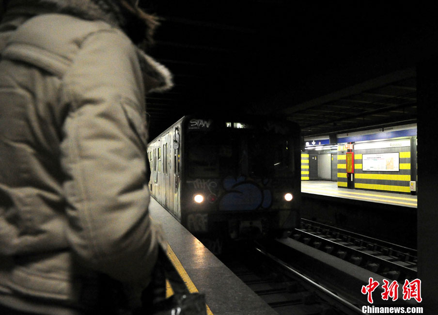 12月21日,意大利羅馬,運(yùn)輸員工當(dāng)天在一節(jié)地鐵空車廂里發(fā)現(xiàn)了一個裝有將要爆炸的炸彈包裹,隨后被安全人員拆除。圖為21日,在意大利羅馬,一輛地鐵即將到站。