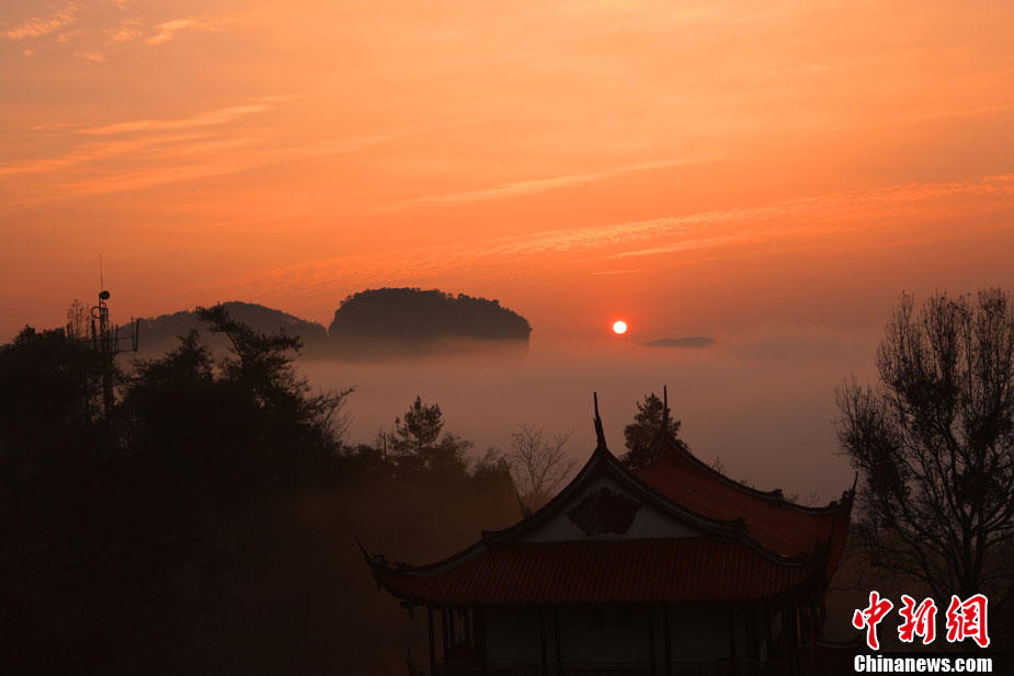 世界文化與自然雙遺產(chǎn)地福建武夷山的云海奇觀,十分壯麗。冬天里的清晨時分,武夷山云窩景區(qū)天游峰云煙迷漫,層巒疊翠,在朝陽交相輝映下多姿多彩,時而云霧飄渺,時而云霧繞山轉(zhuǎn),動中有靜,靜中有動,美不勝收。千姿百態(tài)的武夷山群峰在茫茫云海中若隱若現(xiàn),一如古人所描繪的人間仙境,“昨夜山中一場雨,今朝巖上百道泉”。 中新社發(fā) 邱汝泉 攝
