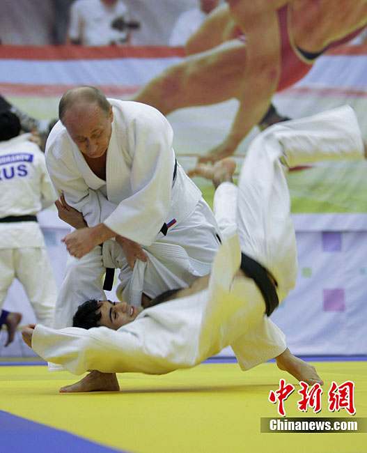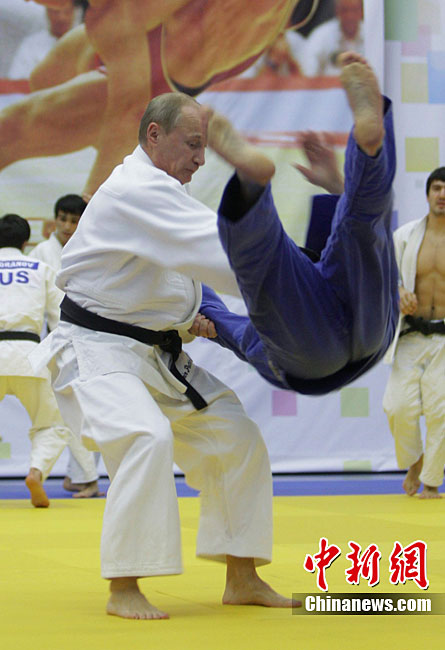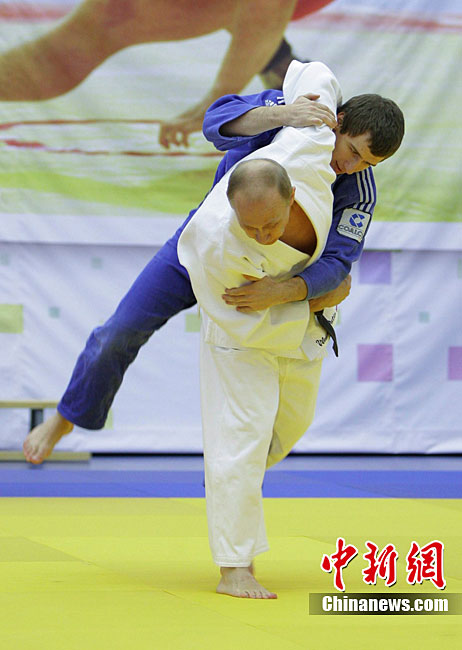 當?shù)貢r間12月22日,俄羅斯總理普京來到圣彼得堡視察了一家柔道俱樂部,并參加了該俱樂部內(nèi)的一堂柔道訓練課。圖為普京正在與運動員切磋柔道。