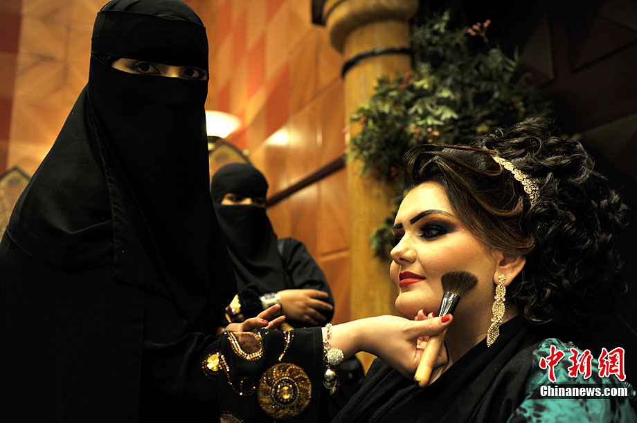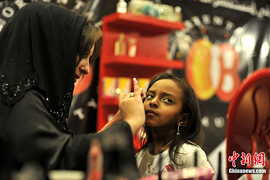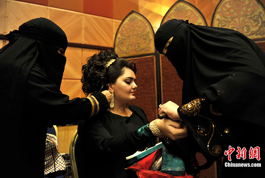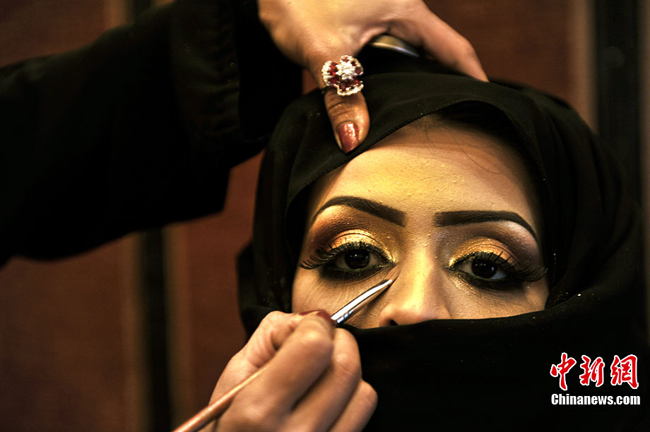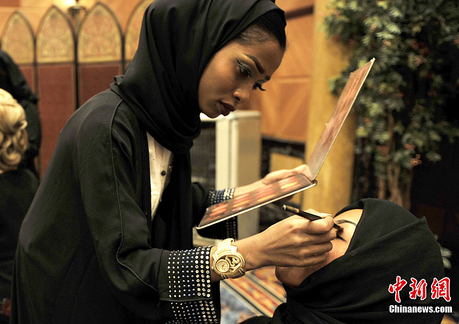 當(dāng)?shù)貢r(shí)間12月21晚,沙特2010化妝用品博覽會(huì)在沙特阿拉伯的吉達(dá)市舉行,此次博覽會(huì)為期四天。圖為沙特婦女在博覽會(huì)上進(jìn)行現(xiàn)場(chǎng)化妝。