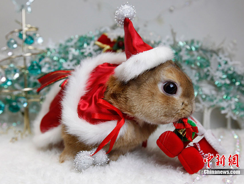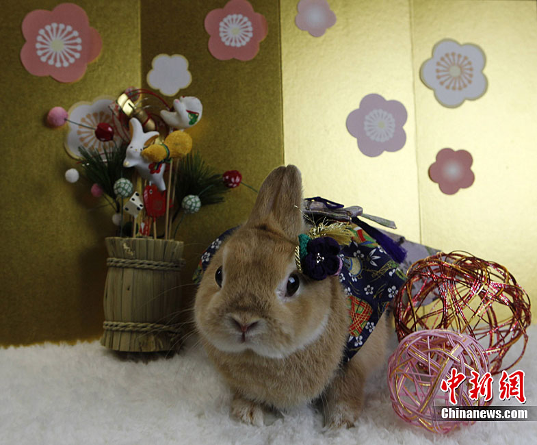 12月21日,日本橫濱一家寵物店的小兔子穿上傳統(tǒng)和服,迎接即將到來的圣誕節(jié)和兔年新年。日本自明治維新后采用公歷紀(jì)年,元旦即是兔年新年的開始。