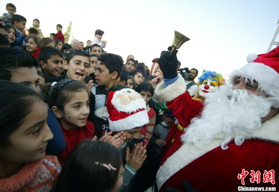 當?shù)貢r間12月24日,伊拉克庫爾德人聚集地圣誕老人為孩子們送去歡樂。