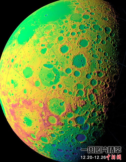 近日,美國(guó)航天局對(duì)外公布了月球勘測(cè)軌道飛行器攜帶的月球軌道飛行器激光測(cè)高儀(LOLA)對(duì)該地點(diǎn)進(jìn)行的高度測(cè)量?茖W(xué)家稱(chēng),月球勘測(cè)軌道飛行器使研究者能制造出最精確且最完整的月球地形圖。紅色代表月球最高點(diǎn),藍(lán)色代表最低點(diǎn)。
