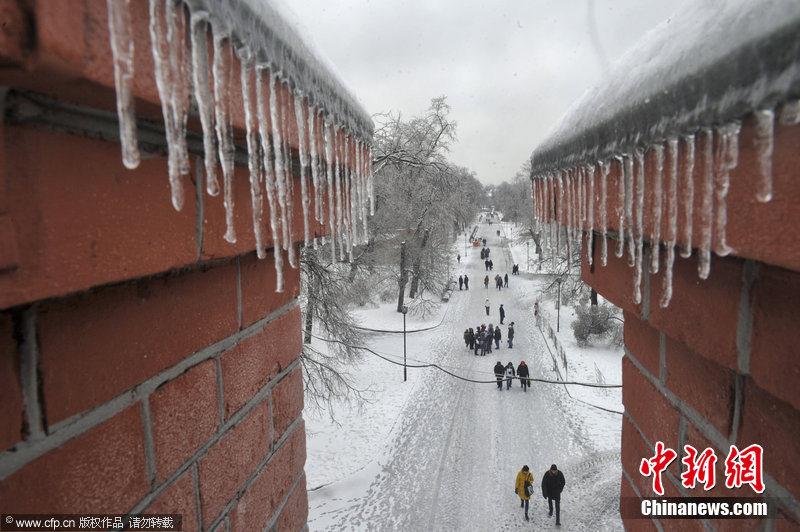 2010年12月25日至26日,持續(xù)近1天的凍雨將俄羅斯首都莫斯科變成了一個(gè)“大溜冰場(chǎng)”,給這座大都市帶來(lái)了諸多不便。這一罕見(jiàn)氣候現(xiàn)象從25日下午開(kāi)始影響莫斯科市。當(dāng)時(shí),天空中開(kāi)始下起雨,雨滴落到地面后受低溫影響,迅速形成了一層“冰殼”,導(dǎo)致很多道路完全被薄冰覆蓋,非常濕滑。圖片來(lái)源:CFP視覺(jué)中國(guó)