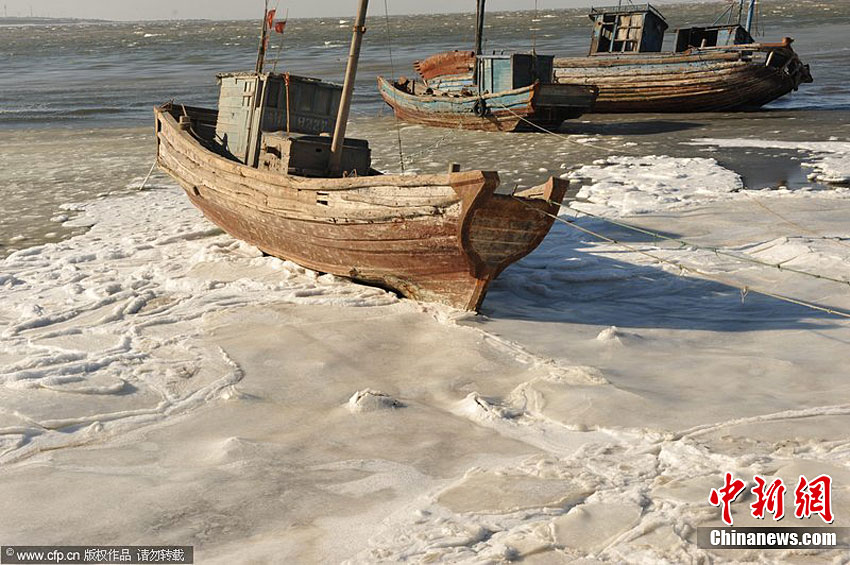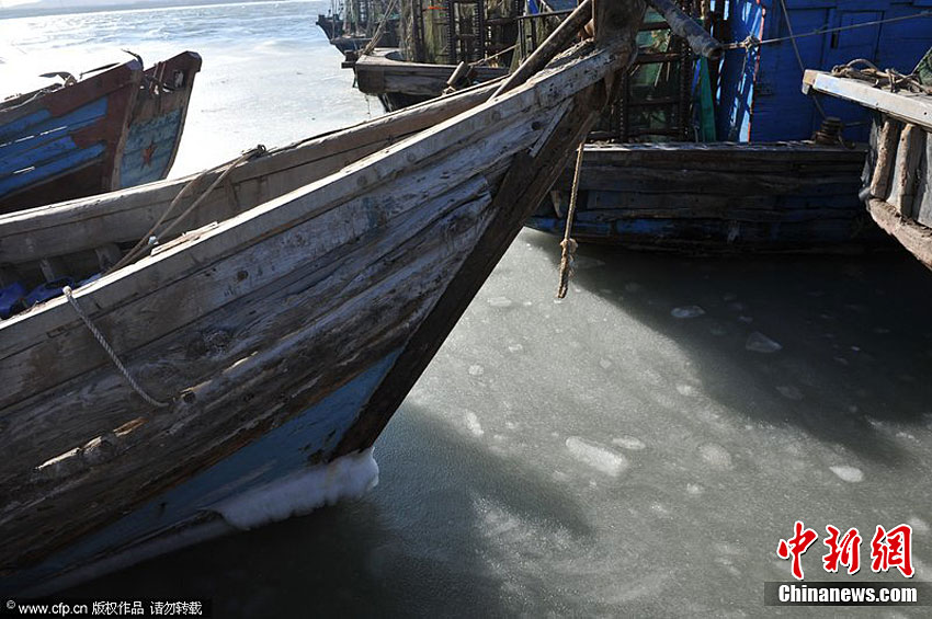 從12月25日以來,一場冷空氣席卷山東半島,沿海最低氣溫達(dá)-11℃,渤海萊州灣剛剛?cè)诨暮1,再次凝結(jié),有些地方形成了寬約三海里的海冰帶,給當(dāng)?shù)厝嗣裆a(chǎn)生活帶來很大影響。方義 攝 圖片來源:CFP視覺中國