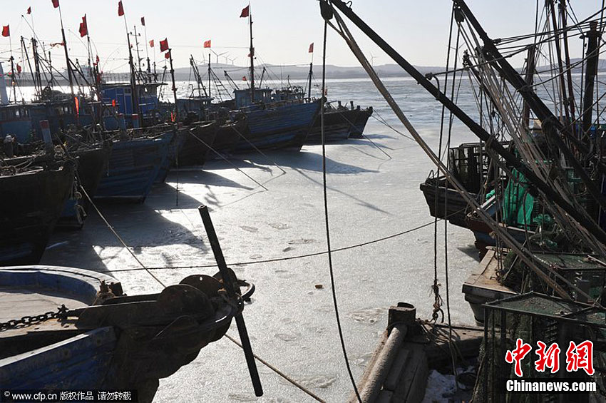 冷空氣席卷山東半島 上百條漁船凍結(jié)萊州灣海面