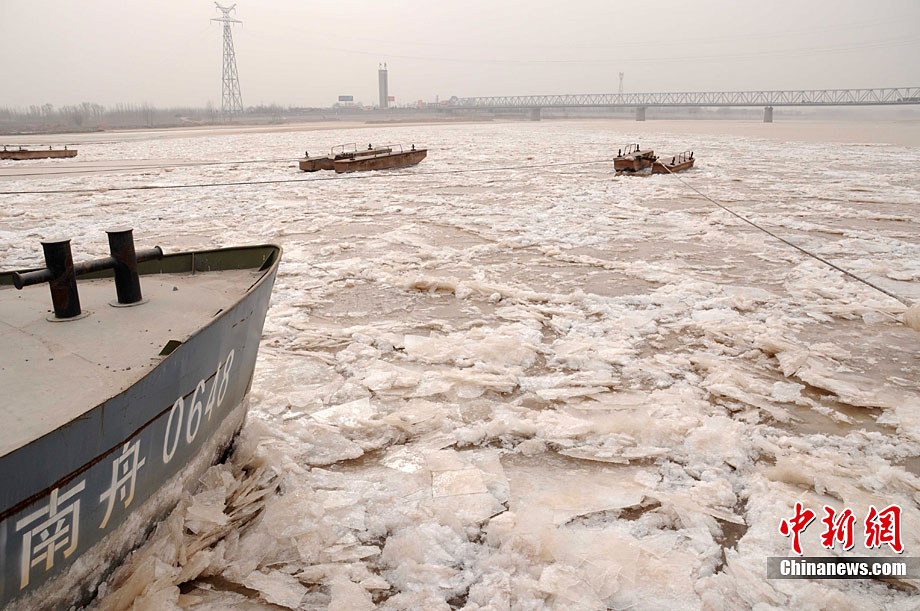 受新一輪強冷空氣影響,黃河下游河段封河迅速發(fā)展。截至12月28日,山東省濟南市黃河槐蔭河段以下全線流凌,最大流凌密度80%。針對黃河下游不穩(wěn)定封凍的特點,黃河防總要求河南、山東黃河河務(wù)部門加強凌情觀測,全力做好各項防凌工作。張濱 攝 圖片來源:CNSPHOTO